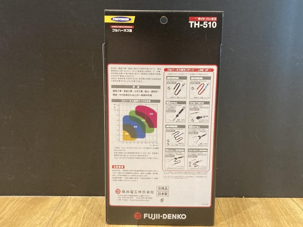 藤井電工 ツヨロン ■商品名 ライトハーネス フルハーネス型 ■型番 TH-510-OT-BLK-S-BX |