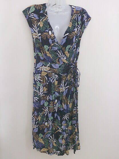 ◇ ◎ PAGEBOY ALICIA ボタニカル柄 ノースリーブ 膝丈 カシュクールワンピース サイズF ブラック マルチ レディース