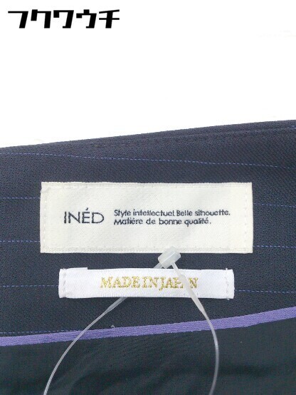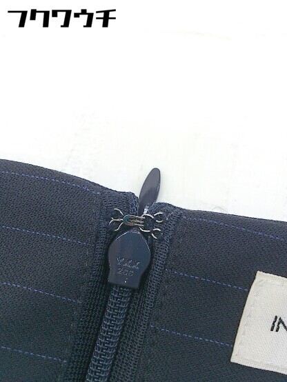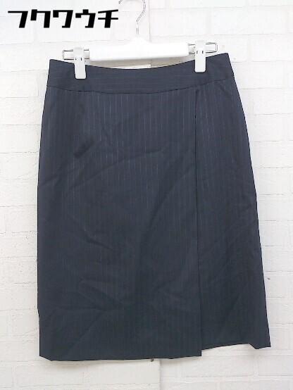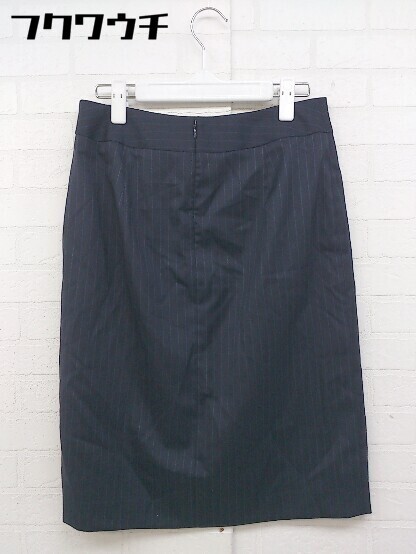◇ INED イネド ストライプ バックジップ 膝丈 スカート サイズ11 ネイビー レディース
