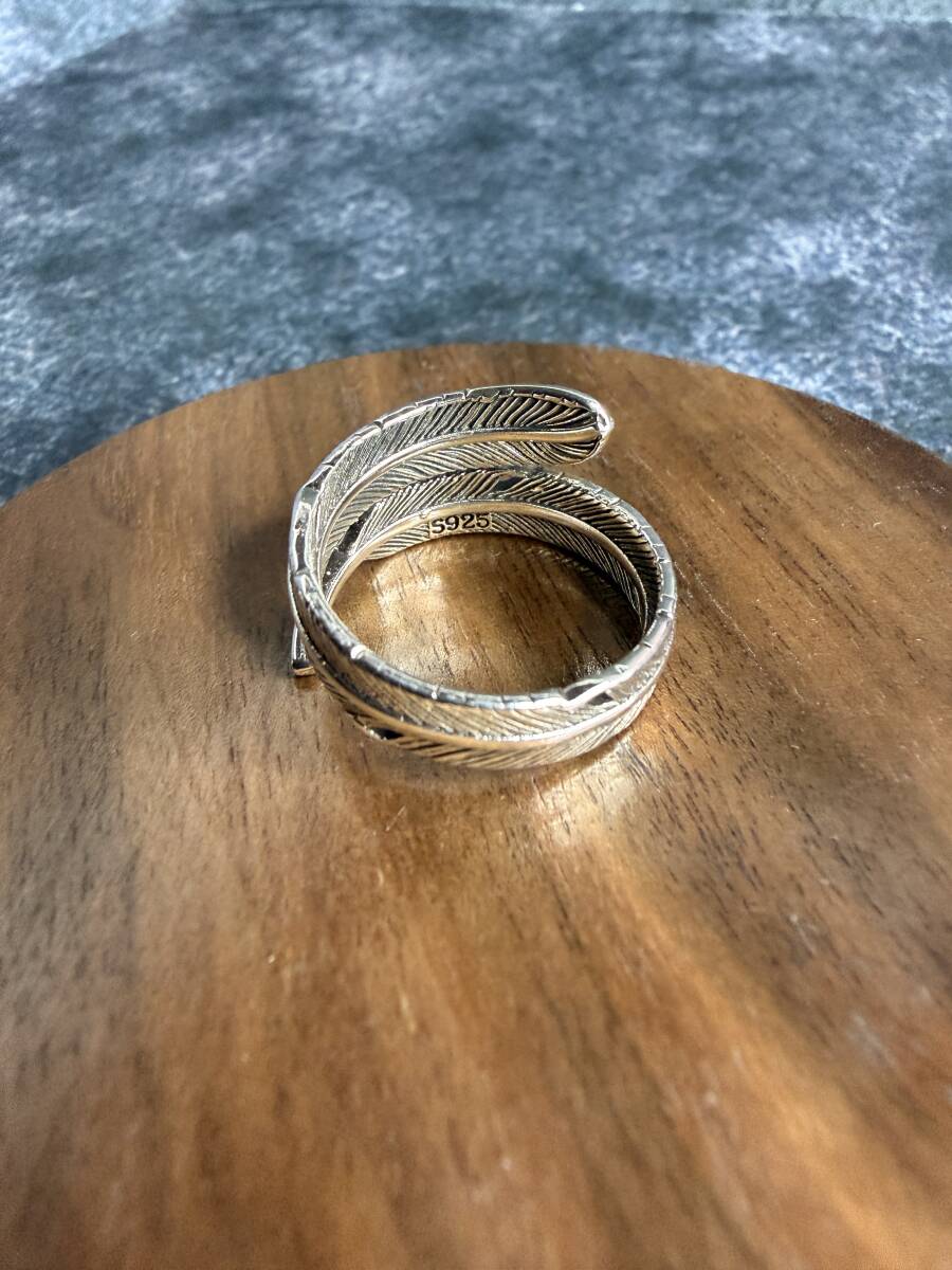 ゴールド フェザー リング シルバー925 メキシカン インディアン メキシカンジュエリー インディアンジュエリー メンズ