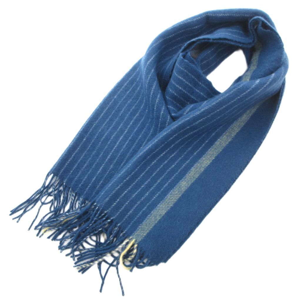 ノーリーズ Nolley's マフラー ストール ストライプ フリンジ カシミヤ 青 ブルー /GV レディース