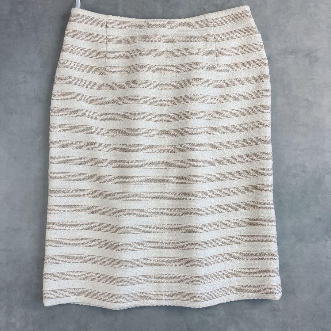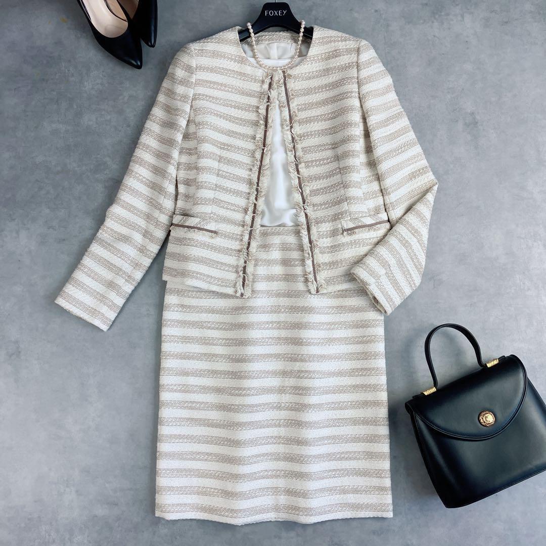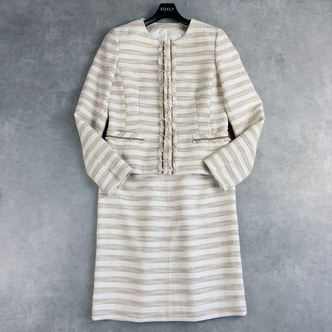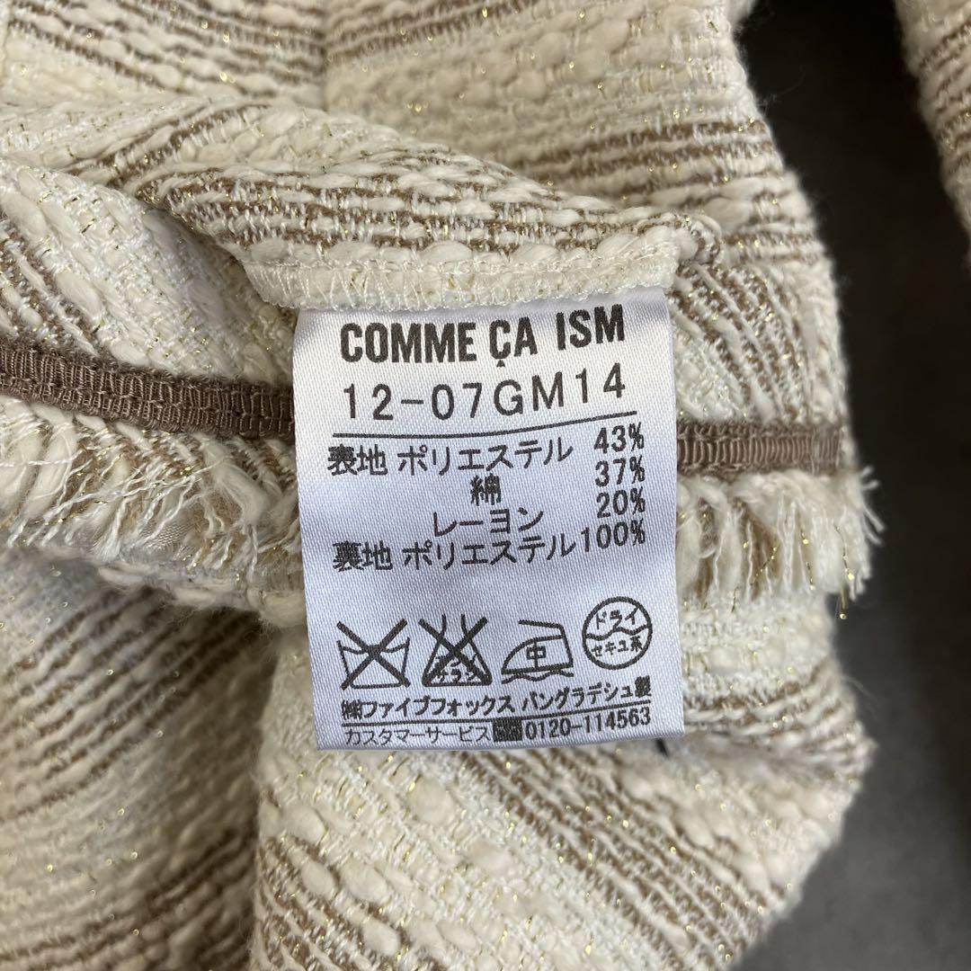 コムサイズムのノーカラージャケットとスカートのセットアップスーツです。