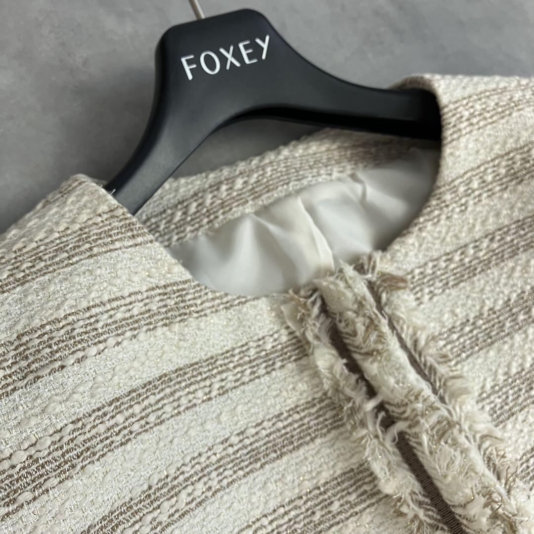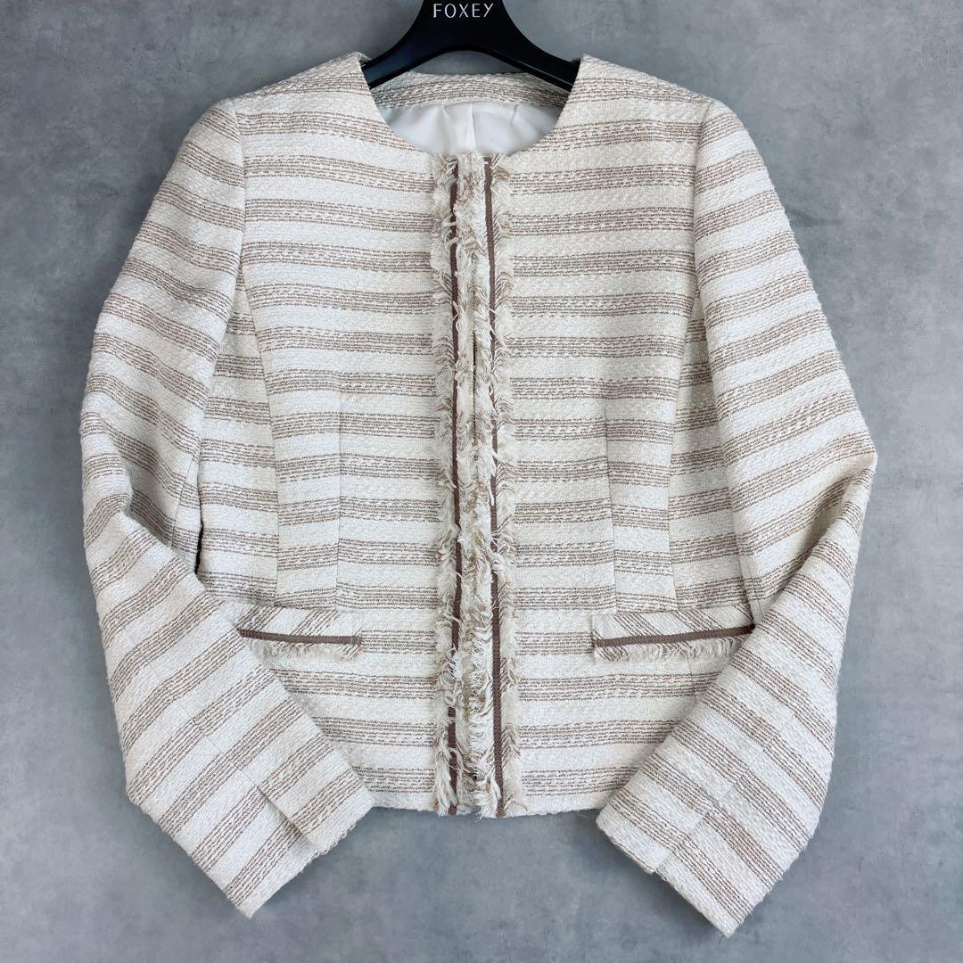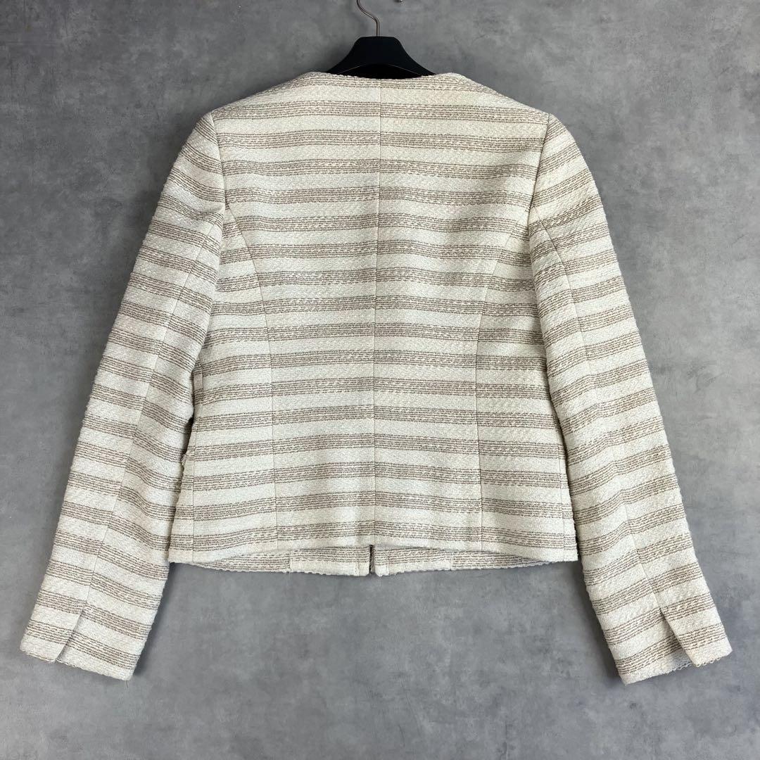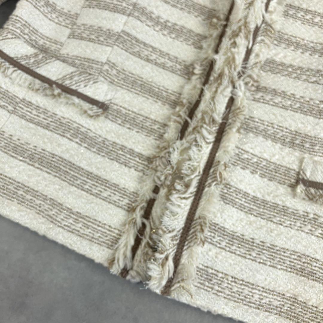コムサイズムのノーカラージャケットとスカートのセットアップスーツです。