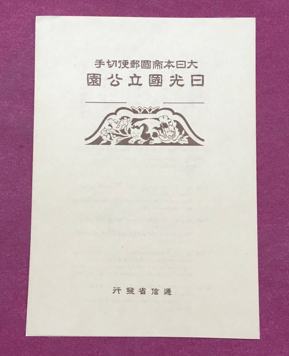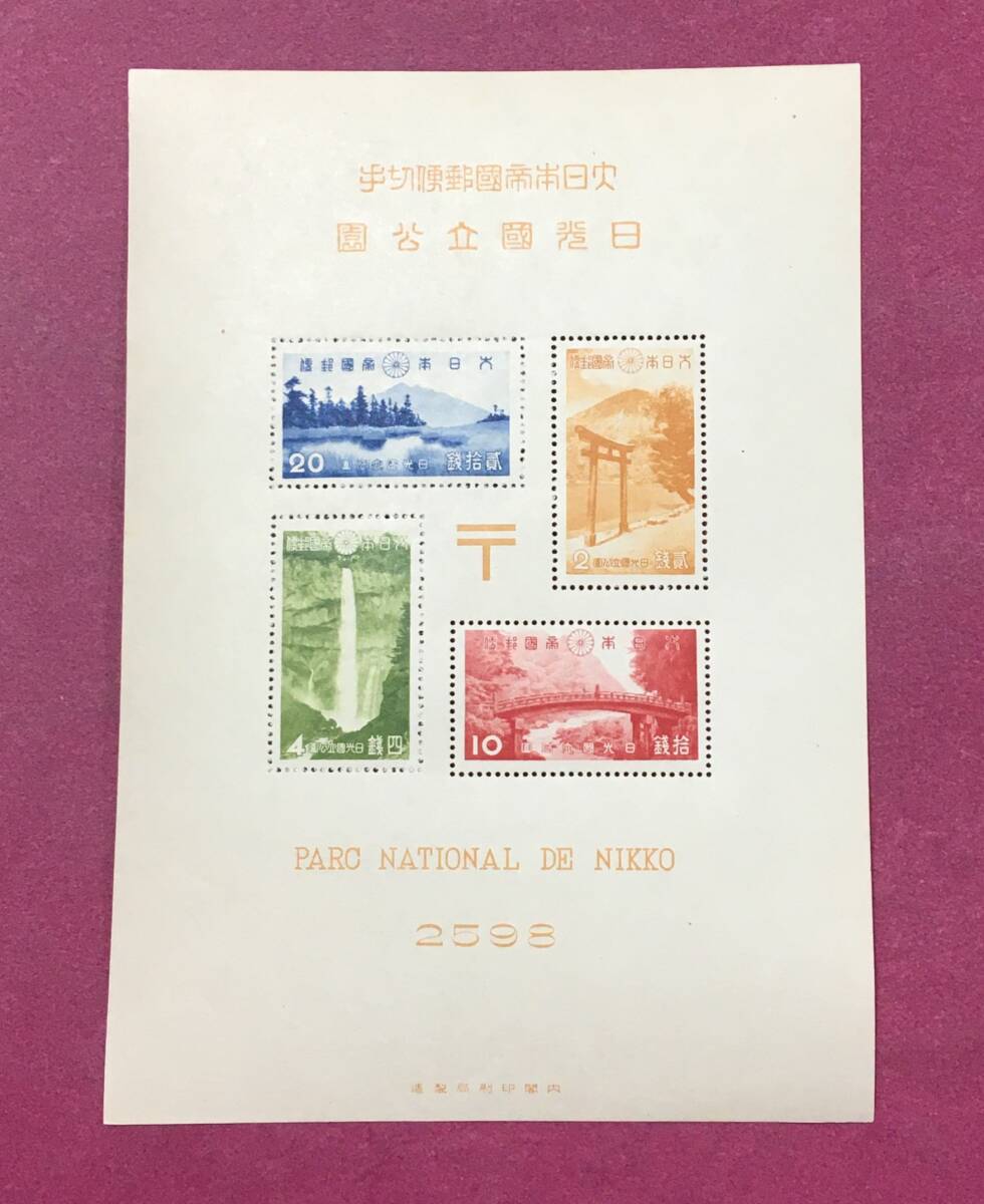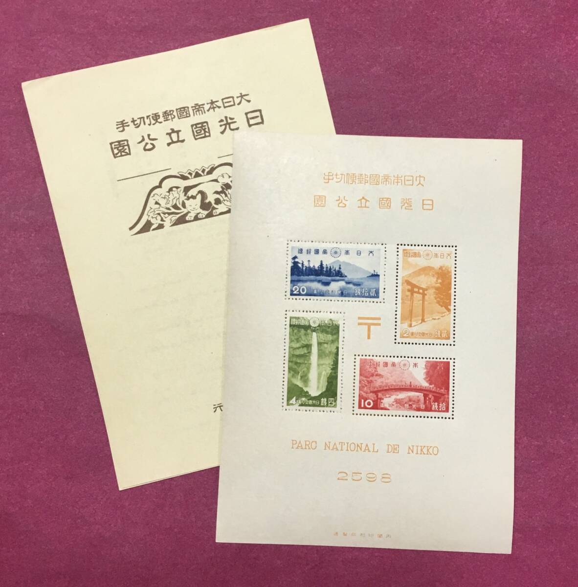 美品 第1次国立公園 日光 国立公園 1938年 タトウ付 小型シート 未使用品