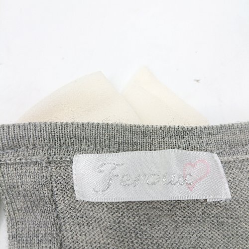 ◇ ⊂ Φ Feroux フェルゥ 首元ビジュー付き 長袖 ニット セーター サイズ2 ライトグレー レディース E