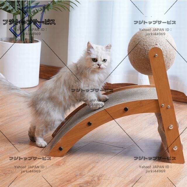 おもちゃ付きー回転する大きいサイザル麻のボールで遊べるので楽しんでいただけます。ボールがなくなる心配もありません。その他、全麻紐支柱2本がございます。娯楽性がたかまります。