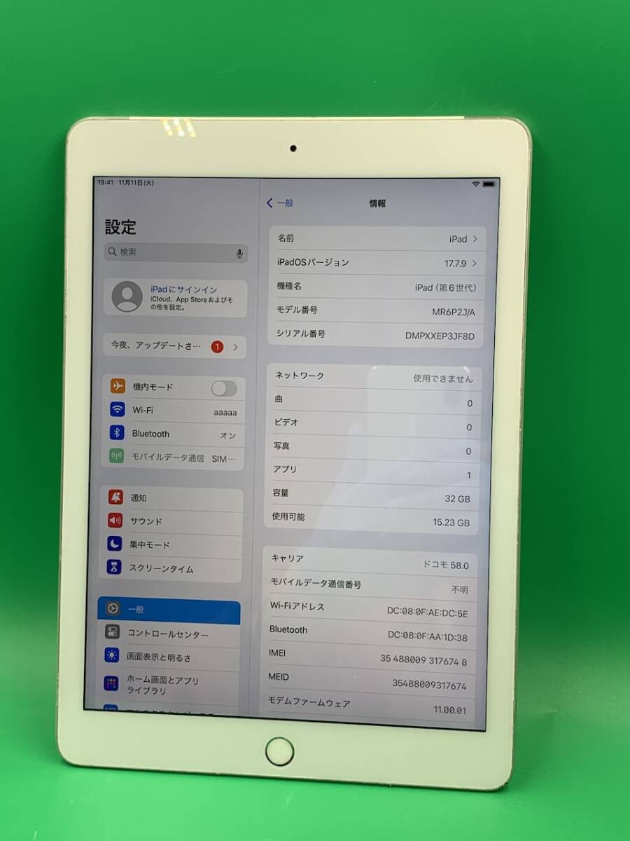 【商品名】iPad 第6世代 Wi-Fi+Cellular 【容量】32GB 【カラー】シルバー 【型番】MR6P2J/A 【バッテリー最大容量】84% 【アクティベーションロック】解除済み 【シリアル / IMEI】354880093176748 【SIMロック】解除済み 【キャリア】KDDI 【利用制限】〇 【初期不良】商品到着後1週間 【付属品内容】 ★本体 ※その他注意事項: ♪液晶面:高品質互換品に交換済み、問題なくご使用できます。 ♪本体状態:本体打痕ありますが、使用上には問題ありません。 通信含め、動作確認済みで、全て問題なく、使用できます。 【発送日程】当日または翌日(当日12時過ぎた場合は翌日になります。) 【発送方法】2、ヤマト運輸コンパクト 【定休日】日曜日(土曜日12時以降、日曜日お支払いの場合は月曜日に発送致します。) 【管理番号】AJ120251112−GBU0006 【免責事項】 1、写真はなるべく分かりやすいよう、傷、汚れなどを隠さず、正確な情報をお伝えしますが、 一部どうしても映れない傷、汚れがあるかもしれませんので、ご注意ください。 2、あくまで中古品ですので、多少の汚れ、細かい傷がございますので、神経質な方はご慎重にお考えください。 3、また、バッテリーは消耗品のため、保証の対象外となります。 4、バックライト等の消耗品、液晶色ムラ・ドット抜けは可能な限り記入するようにしますが、あくまでも消耗品なので、当方が検品できない場合もございますので、その場合は保証対象外になります。 | ||