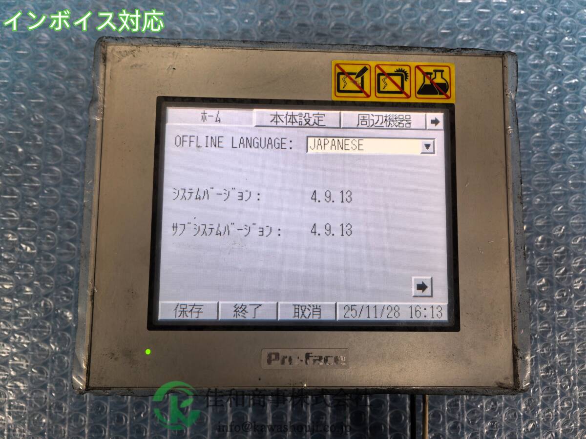 メーカー:pro face 型番 :PFXGP1301TAD 付属品:なし 状態:正常動作していた機械設備から取り外した物です。中古動作保証です。一週間内初期不良は返品、 返金対応できます。 注意事項:動作保証の商品には必ずお手元で動作確認済後の受け取り連絡お願い致します。 (バッテリーは消耗品の為保証対象外とさせていただきます。) お問い合わせメール:info@kawashouji.co.jp 画像が全てとなります。 設定、メンテナンスに関しては一切サポートを行っておりません。 ※商品は中古品なので、少々の汚れや擦り傷などがある場合も御座いますので、ご了承の上でご購入ください。 キズ、汚れに関してはノークレーム,ノーリターンでお願い致します。 | |