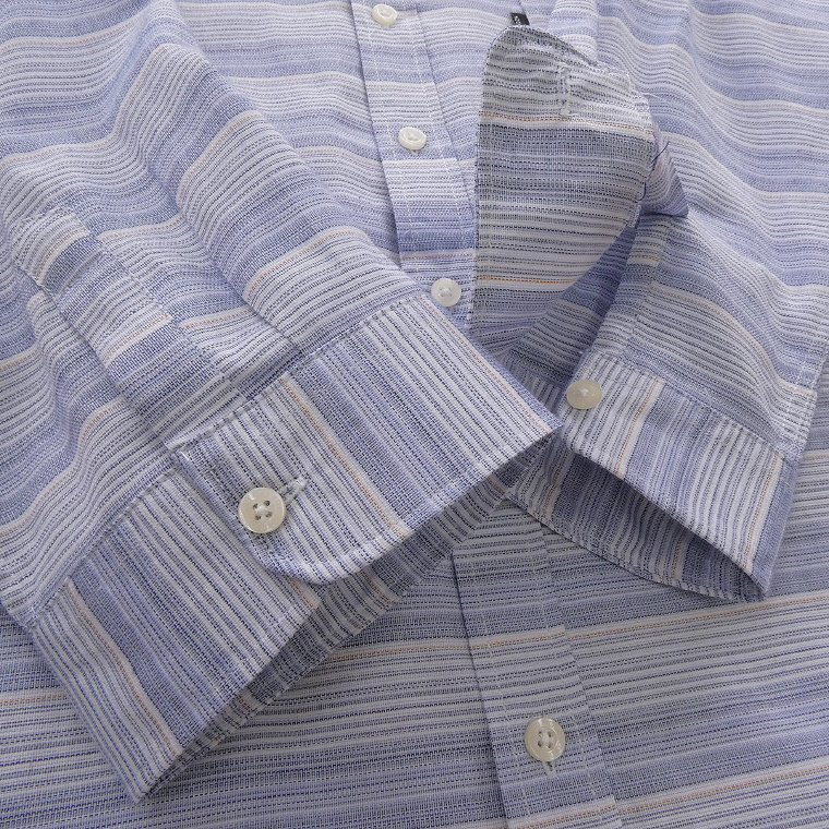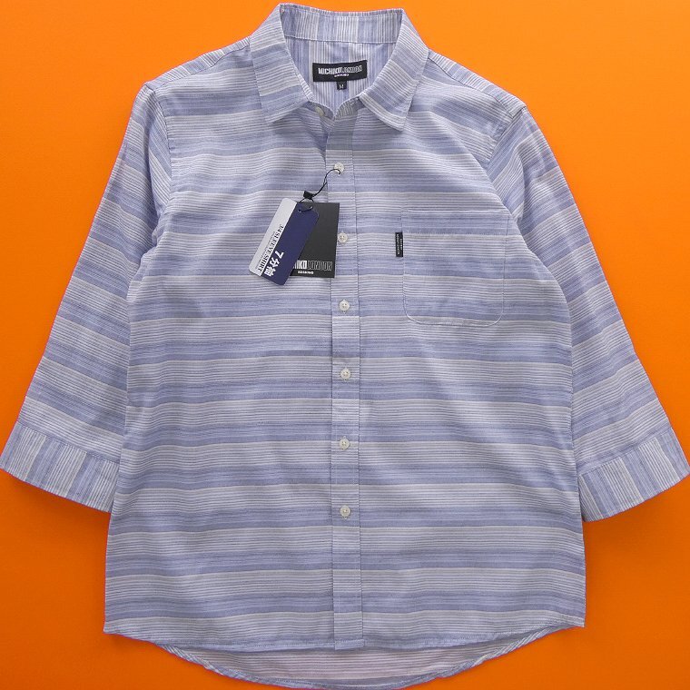 ・サラッとした薄手の生地感で、汗をかいてもベタつきにくく爽やかで快適な状態を保ちます。 ・多色の色彩鮮やかなマルチカラーのボーダー柄が、春夏シーズンにオススメの一枚。 ・レギュラーカラー、左胸ポケットあり、七分袖仕様です。 |