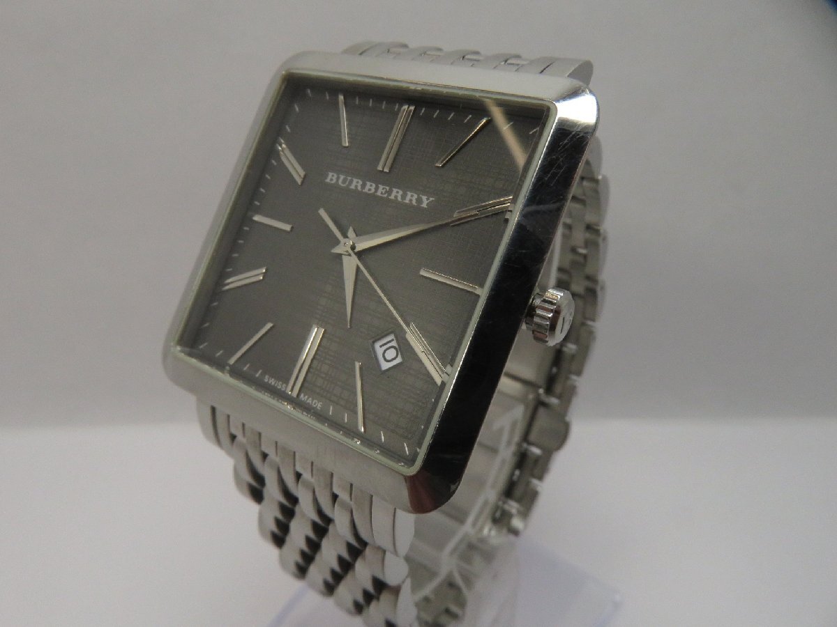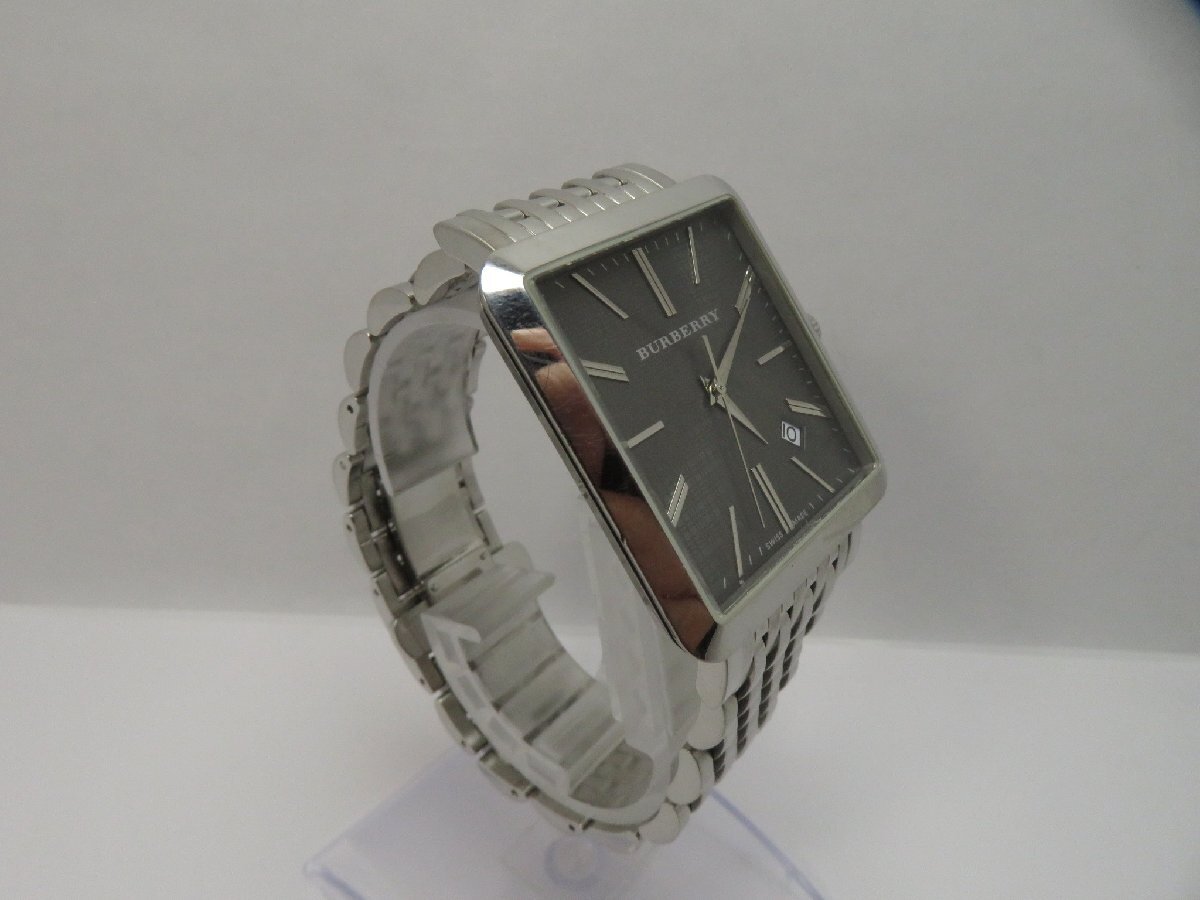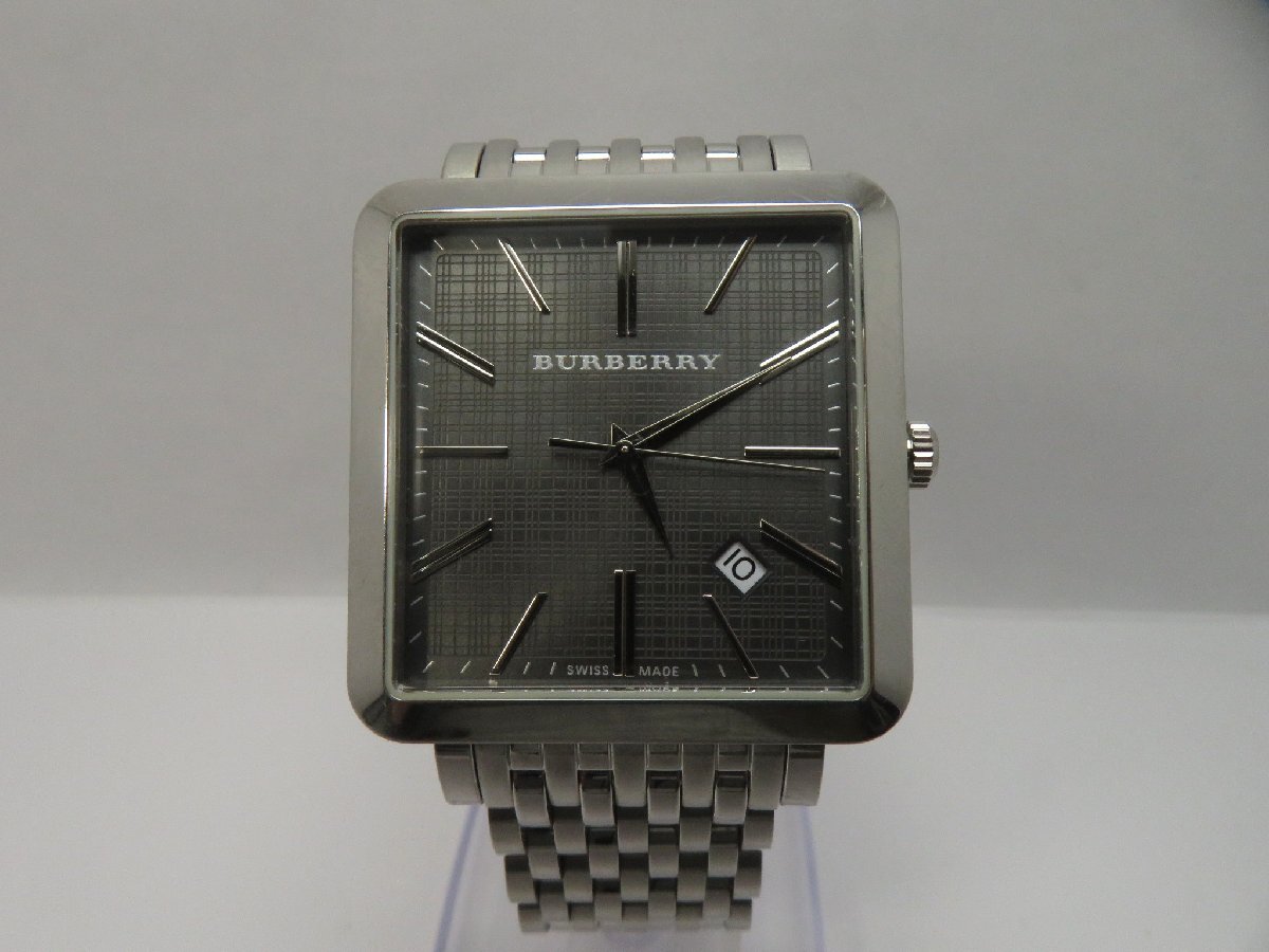 1円開始◆稼働◆ バーバリー BU1711 グレー クオーツ ユニセックス 腕時計 コマ AA02401