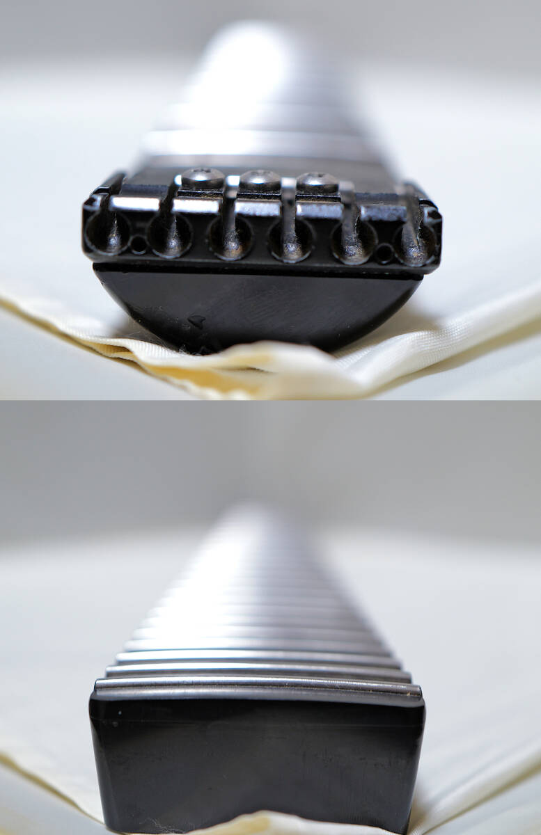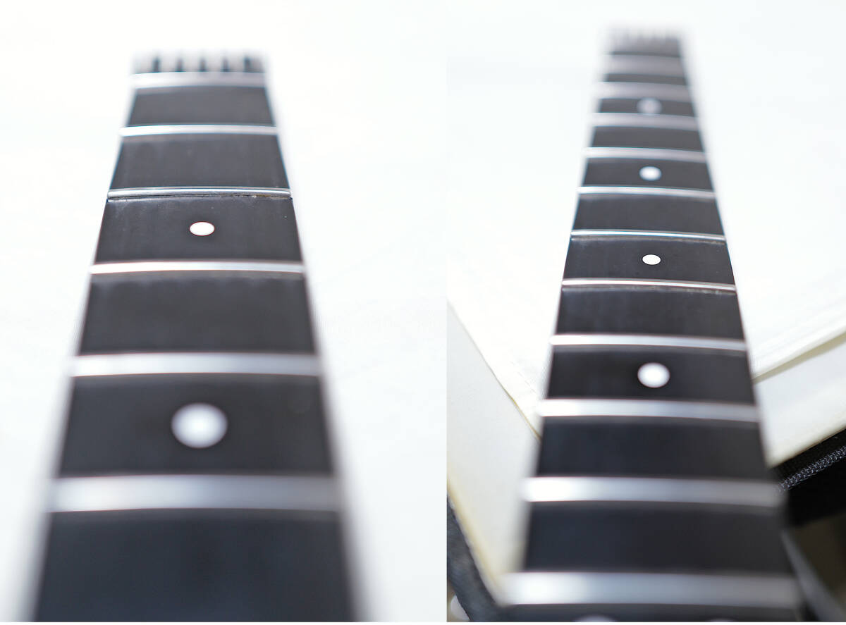 フレットは原宿の松下工房にてステンレスジャンボフレットに打ち直しをしてもらい、ほぼ残っています。