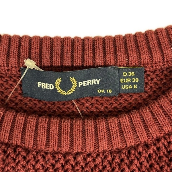 フレッドペリー FRED PERRY 長袖セーター/ニット サイズ36 M - ボルドー×ダークネイビー レディース クルーネック トップス