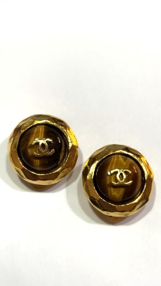 タイガーアイ×ゴールドの存在感あるイヤリングです。