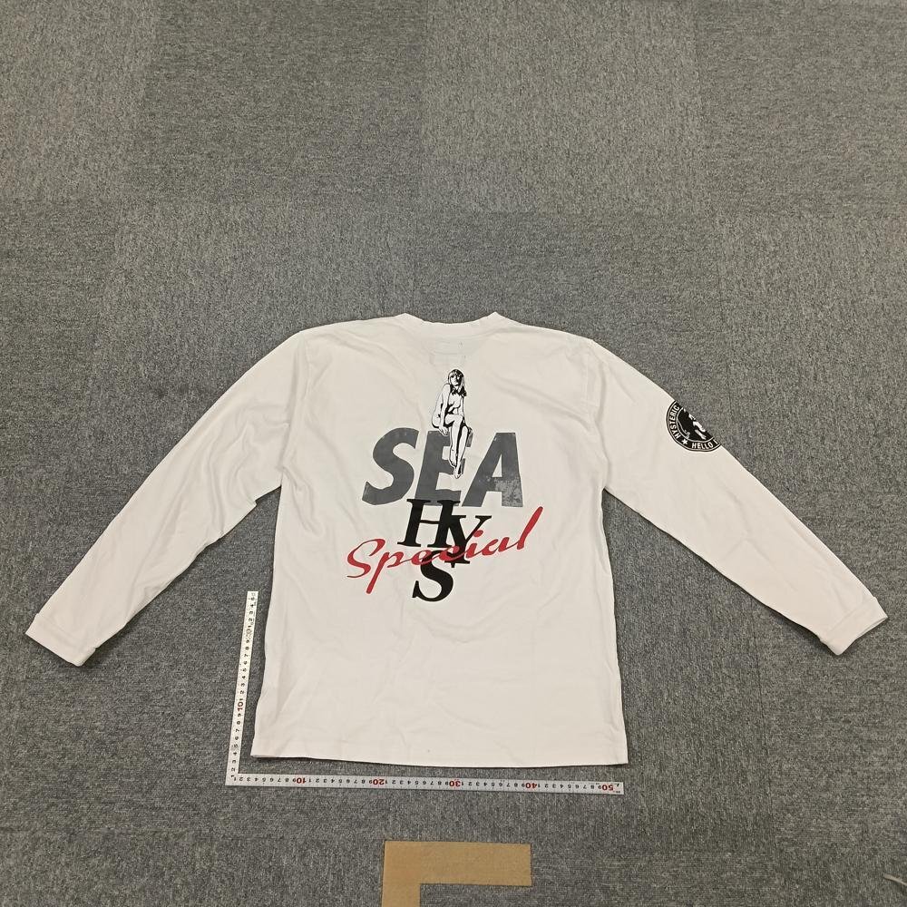状態備考 : WIND AND SEAの定番ロゴプリント長袖Tシャツ。清潔感のある白地にアイコニックなロゴが映え、カジュアルスタイルを格上げします。目立った傷や汚れなく、快適に着用いただけます。人気のアイテムをお探しの方へ。