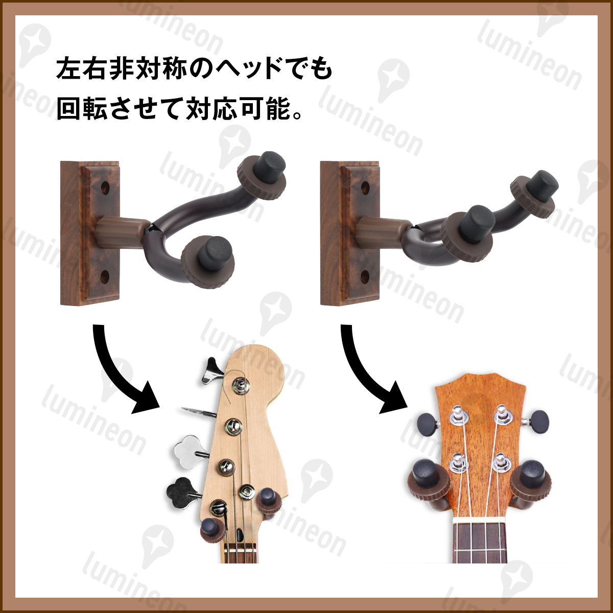 ギター ハンガー ベース 2本 ネジ付 天然木 木製 ホルダー 壁掛け フック 立て掛け ラック ホルダー スタンド ハンガー 楽器 用品 g055b 3