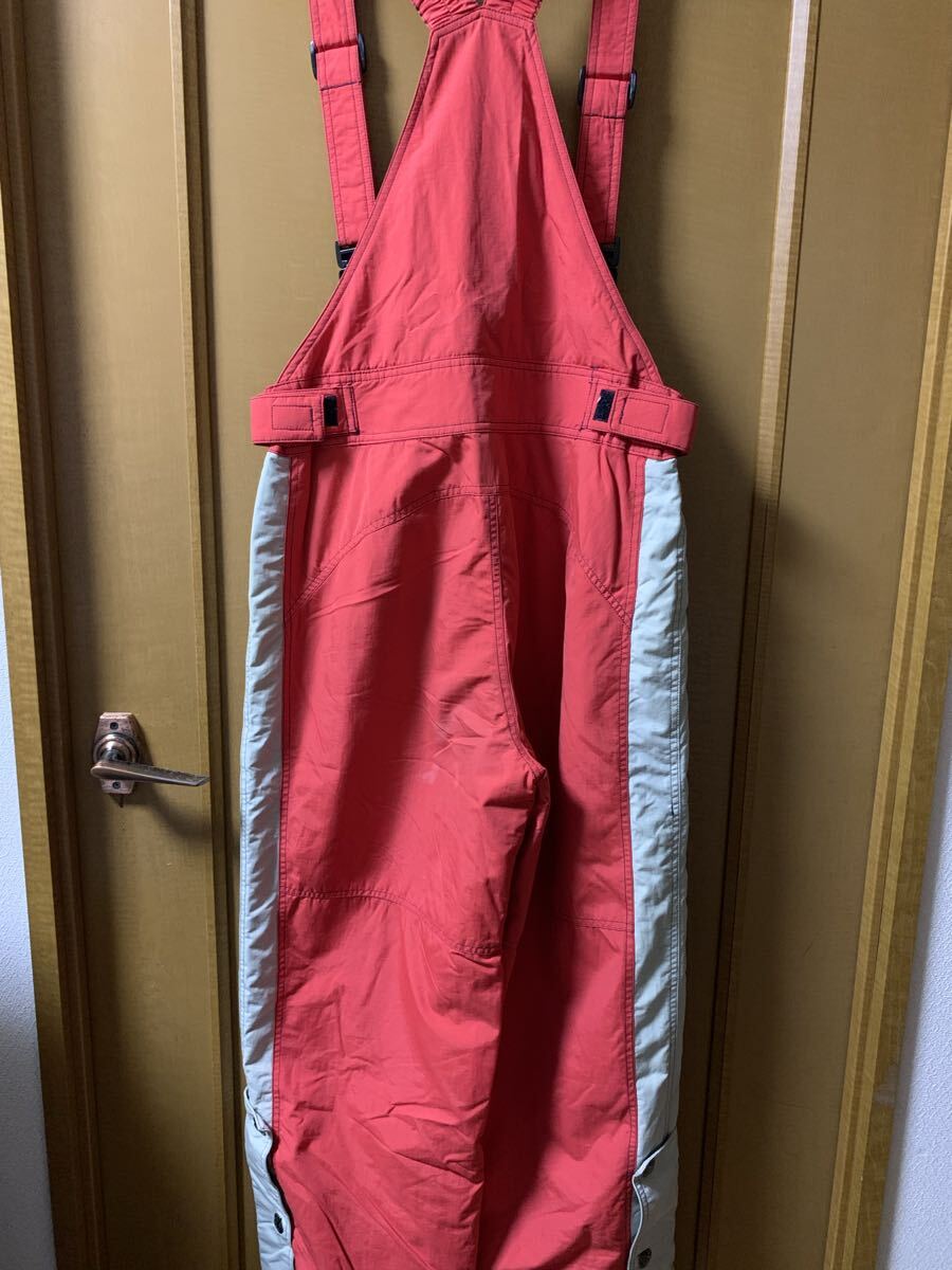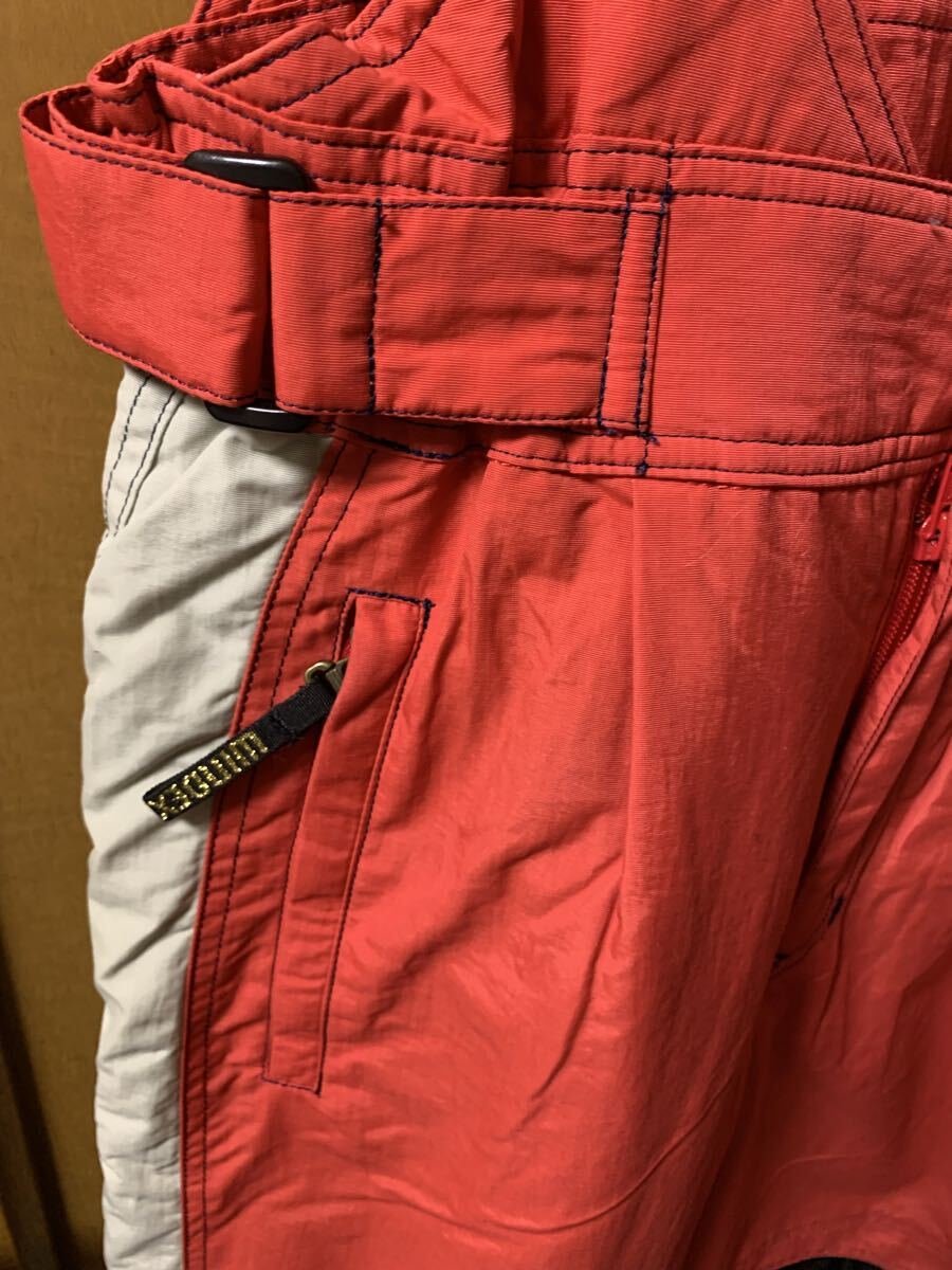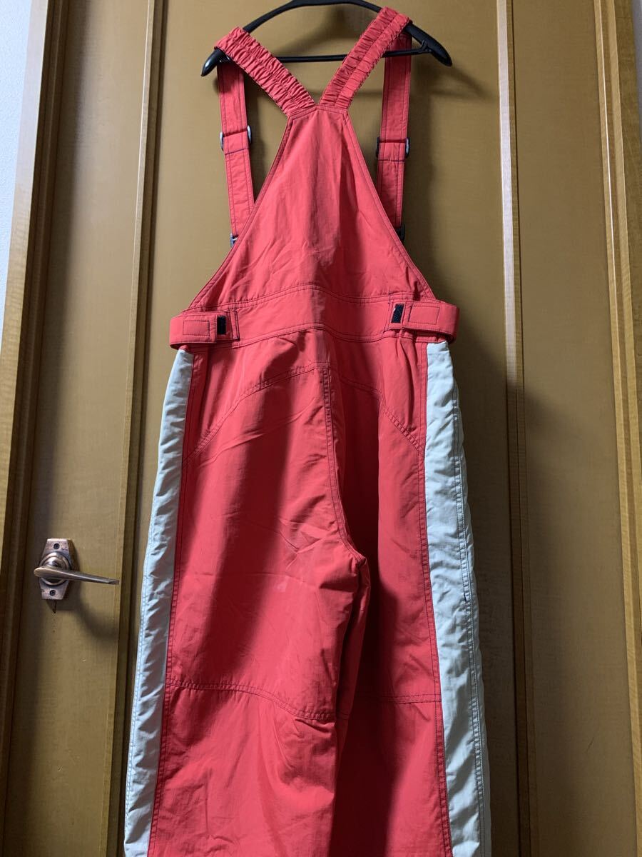 ナイロン製のレッドサスペンダー付きオーバーオール、ウィンタースポーツに最適。