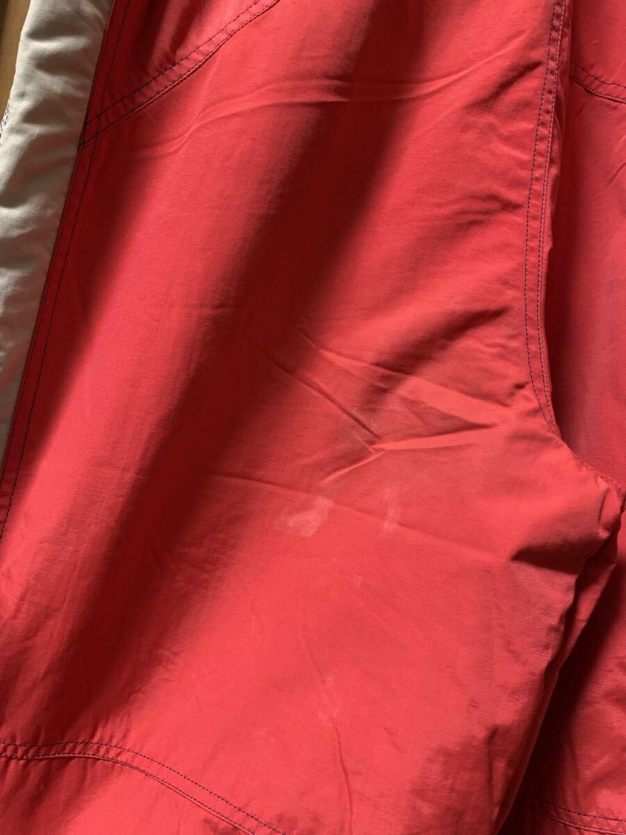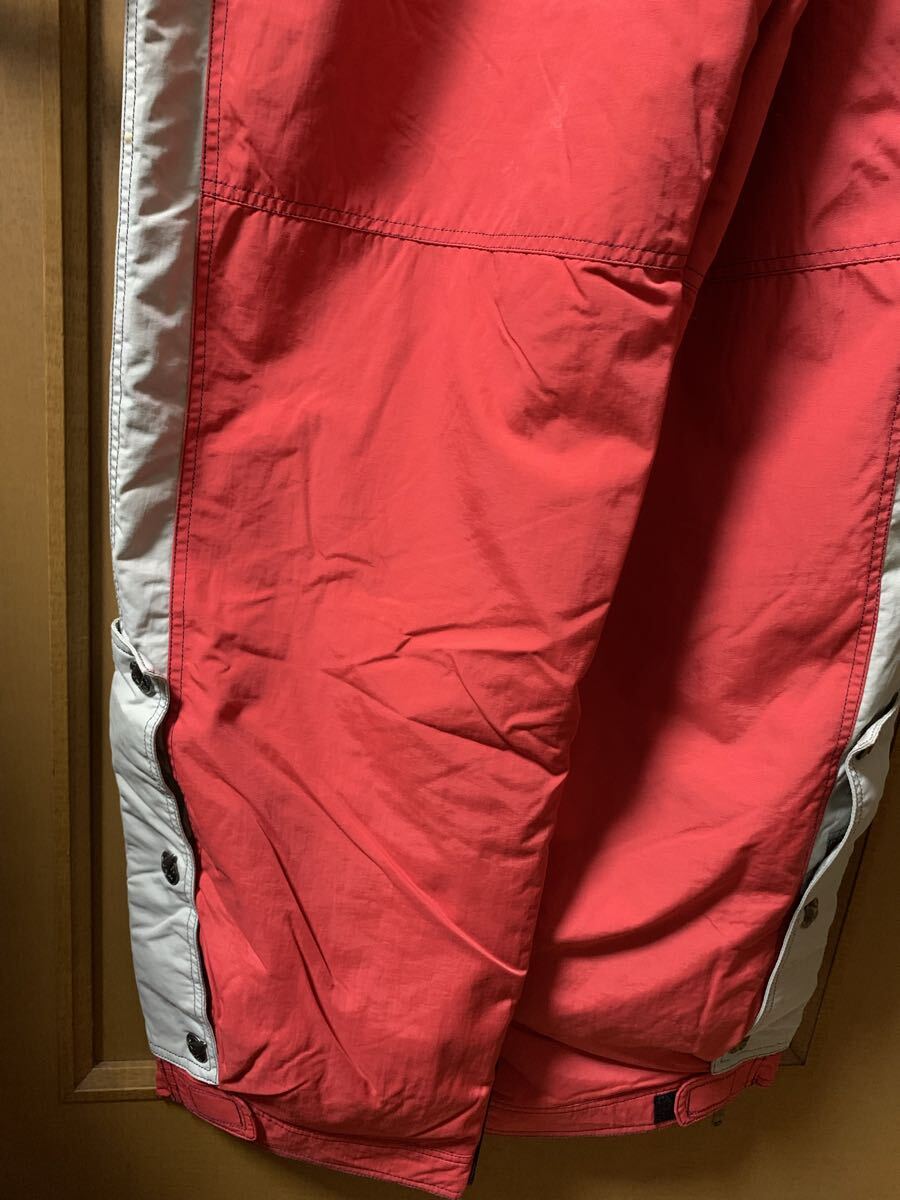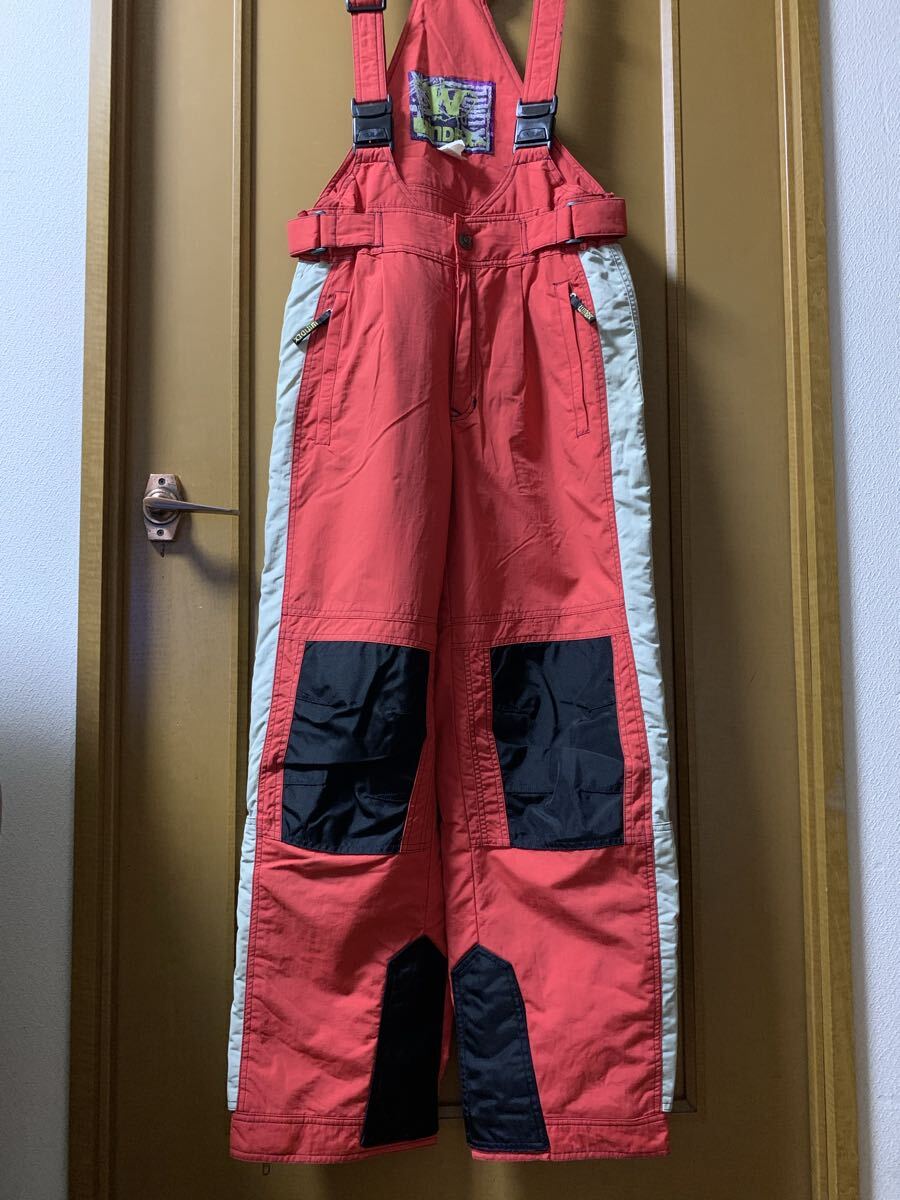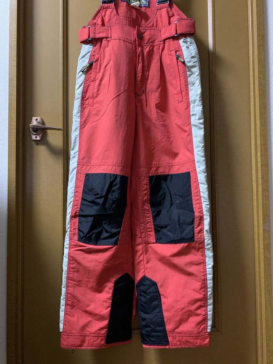 ナイロン製のレッドサスペンダー付きオーバーオール、ウィンタースポーツに最適。