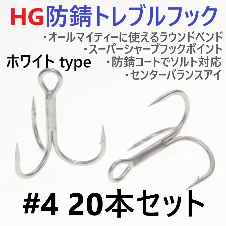 ハイグレード防錆トレブルフック ホワイト#4 20本セットの出品です。