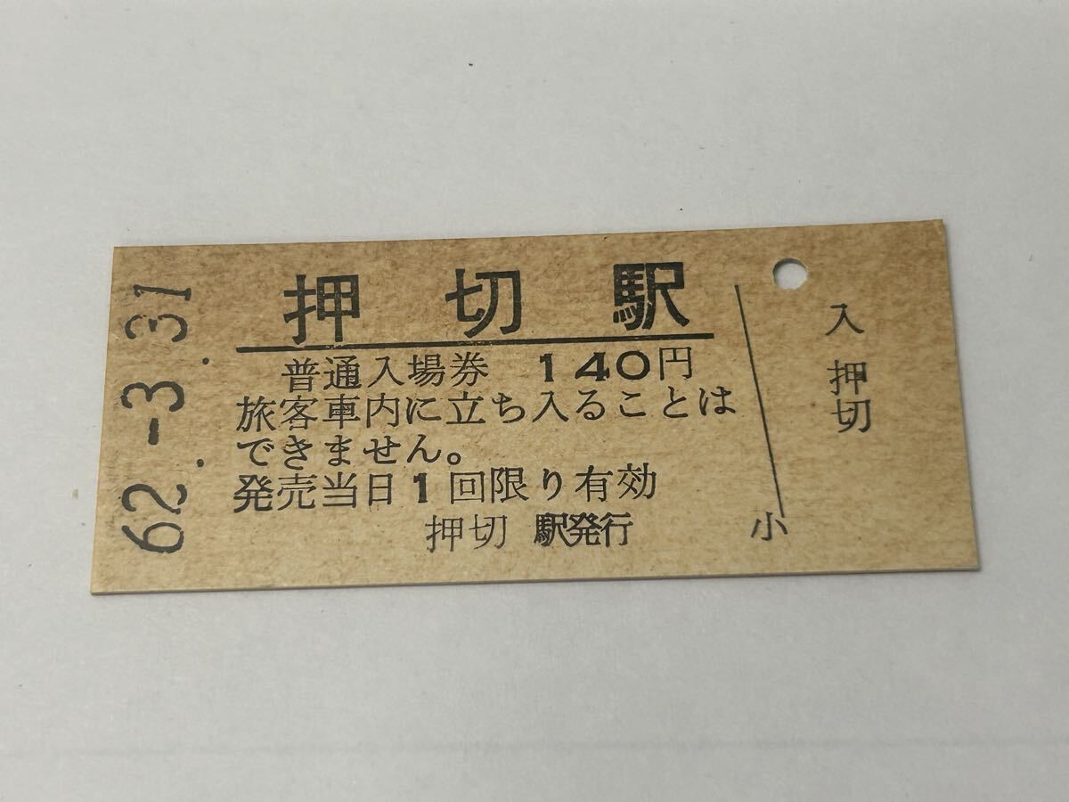 国鉄の分割民営化前日(昭和62年3月31日)の日付の硬券の入場券です。