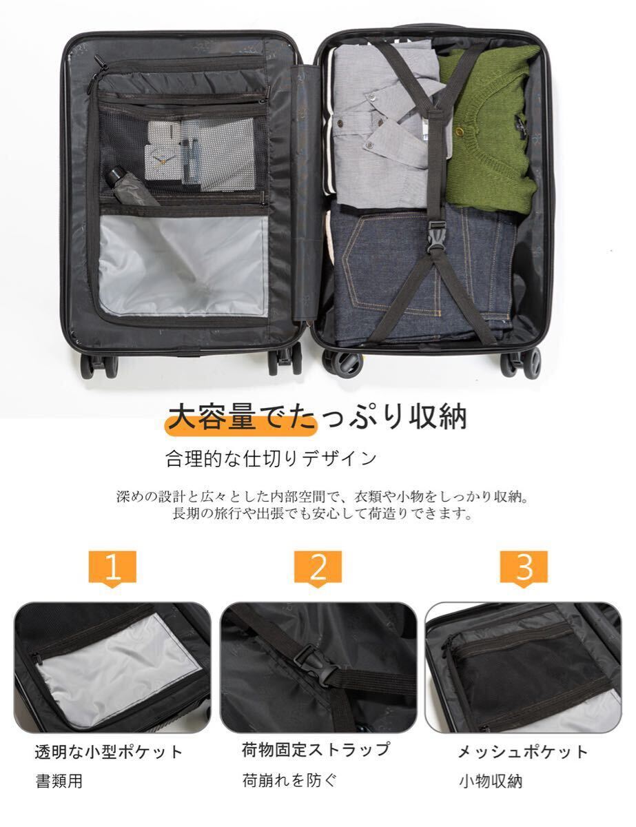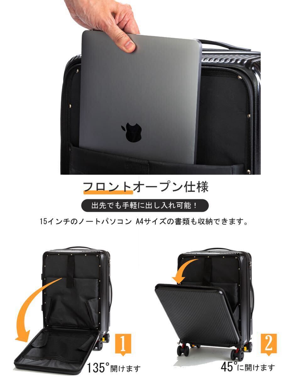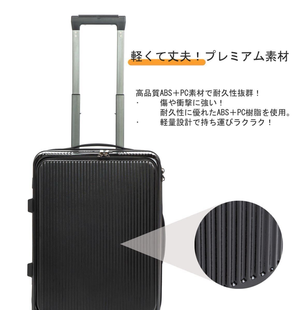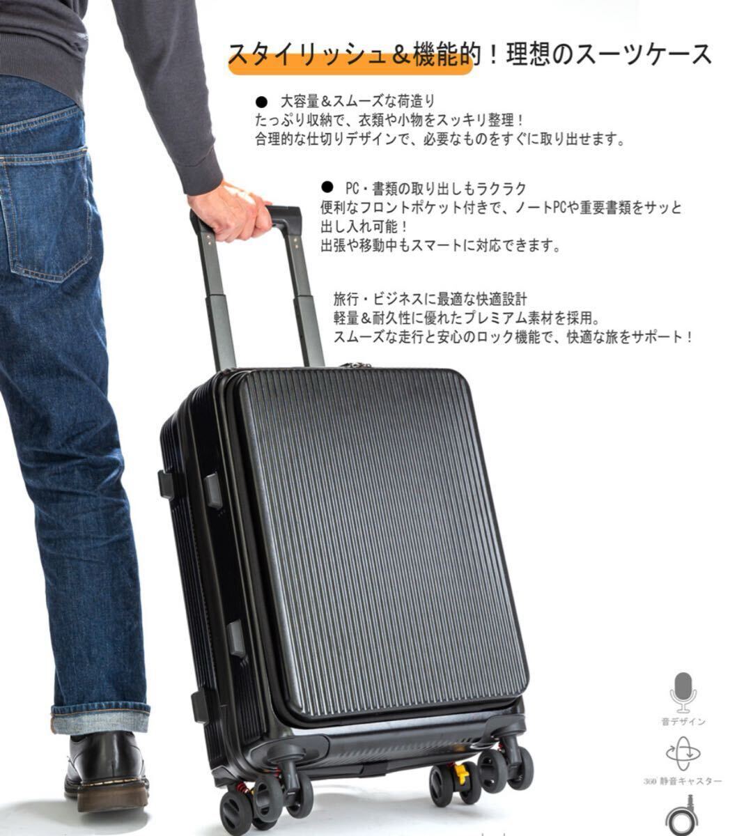 スーツケース キャリーケース フロントオープン 機内持ち込み 軽量 キャリーバッグ ストッパー カップホルダー付き ホワイト
