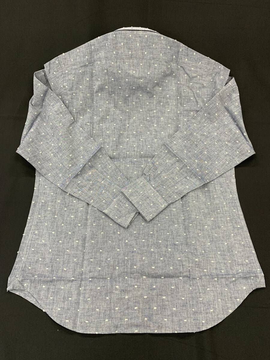 1.7万円 高級ブランド 新品 高品質 日本製 未使用品 LL 麻混 メンズ ブルー系 刺繍 ワイシャツ カジュアル シャツ ドット 126-15