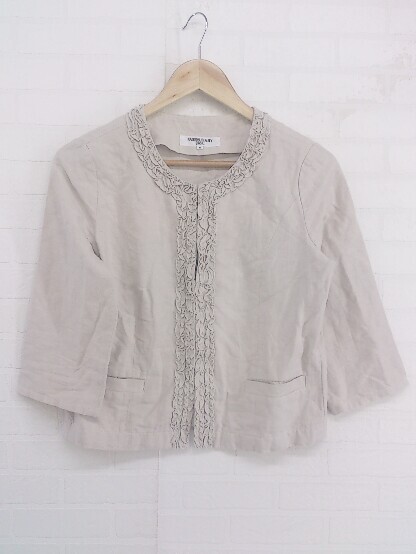 ◇ NATURAL BEAUTY BASIC ナチュラルビューティーベーシック リネン混 長袖 ジャケット サイズM ベージュ系 レディース P