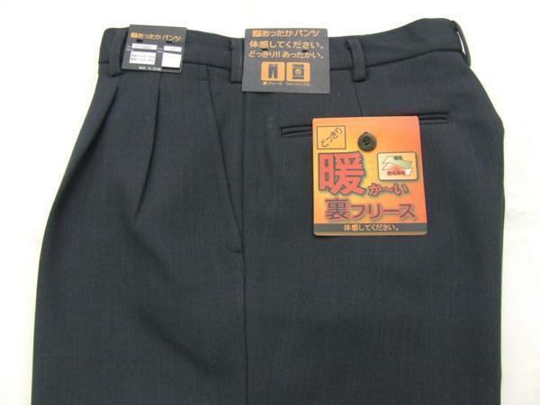 ”びっくり!! あったかい” 2枚の生地を貼り合わせたボンディング素材で、裏側がフリースになっていてとても暖かいパンツです!また、風を通さない防風素材です。素材は家庭で簡単に洗えるウォッシャブル素材です。 商品名:ボンディング裏フリース防寒ツータッグスラックス 表素材:ポリエステル100% 裏素材:ポリエステル100% カラー:チャコールグレー サイズ:82 希望小売価格:6,372円(税込み) 縫製:made in china 詳細寸法 ウエスト76cm(総丈110.0cm、股下85cm、股上25.0cm、ワタリ巾33.0cm、膝幅24.0cm、裾幅21.1cm) ウエスト79cm(総丈110.5cm、股下85cm、股上25.5cm、ワタリ巾33.5cm、膝幅24.4cm、裾幅21.3cm) ウエスト82cm(総丈112.0cm、股下85cm、股上26.0cm、ワタリ巾34.0cm、膝幅24.8cm、裾幅21.5cm) ウエスト85cm(総丈112.5cm、股下86cm、股上26.5cm、ワタリ巾34.5cm、膝幅25.2cm、裾幅21.6cm) ウエスト88cm(総丈113.0cm、股下86cm、股上27.0cm、ワタリ巾35.0cm、膝幅25.6cm、裾幅21.8cm) ウエスト91cm(総丈113.5cm、股下86cm、股上27.5cm、ワタリ巾35.5cm、膝幅26.0cm、裾幅22.0cm) | ||||