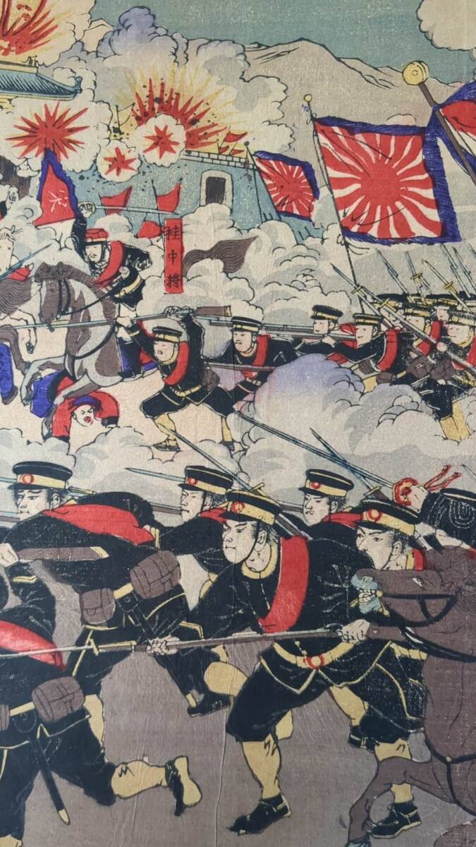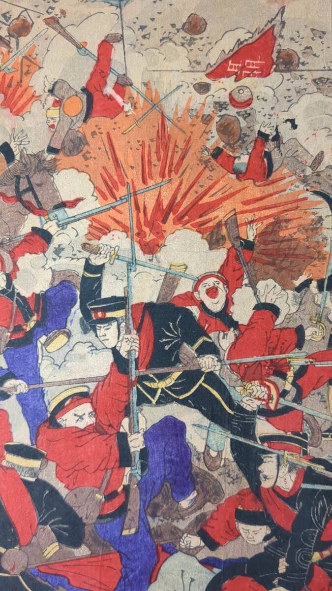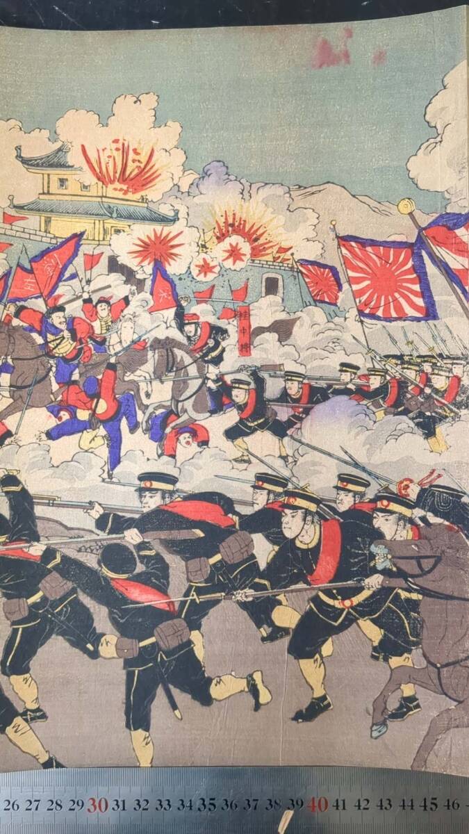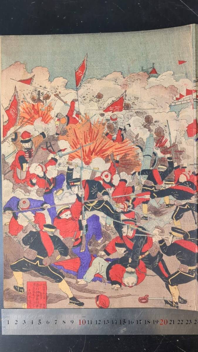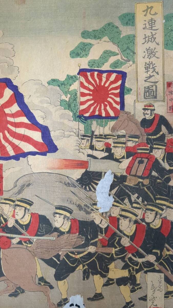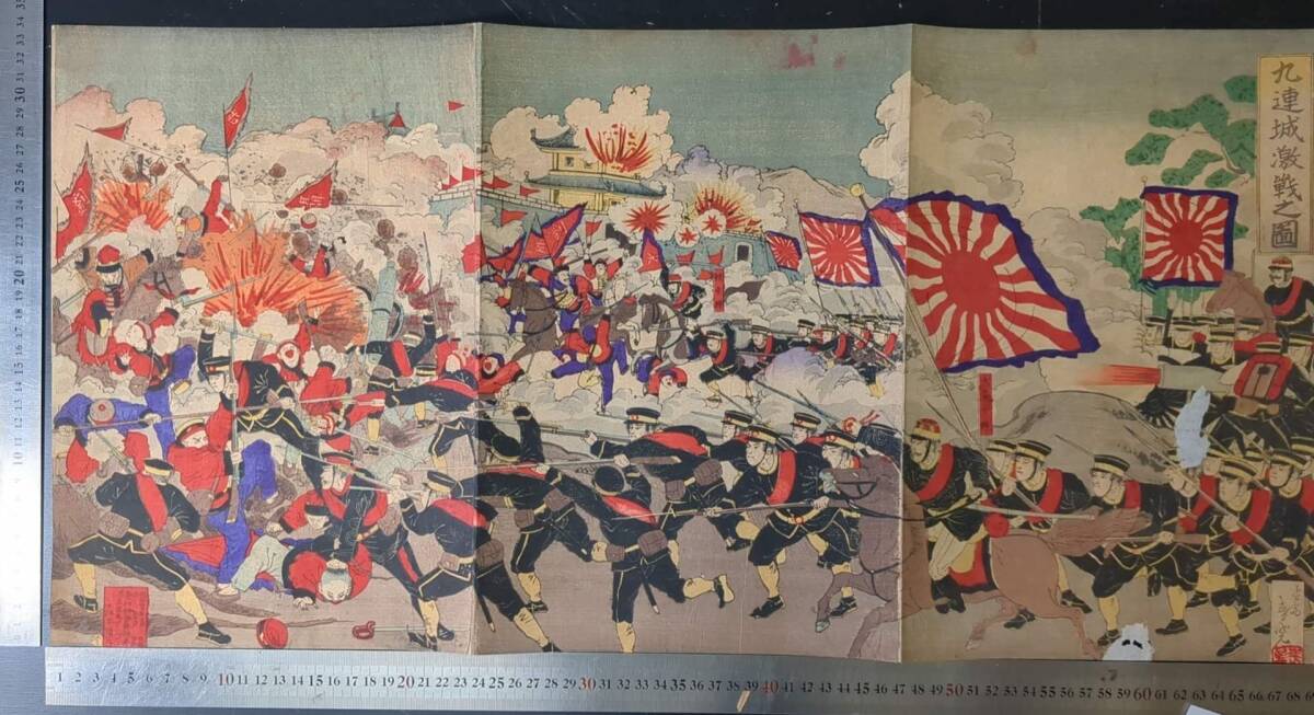 s1200204浮世絵 真作 版画  九連城激戦之図 清国 楊斎延一 小国政  木版画 錦絵