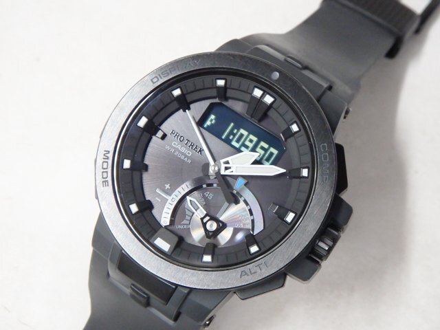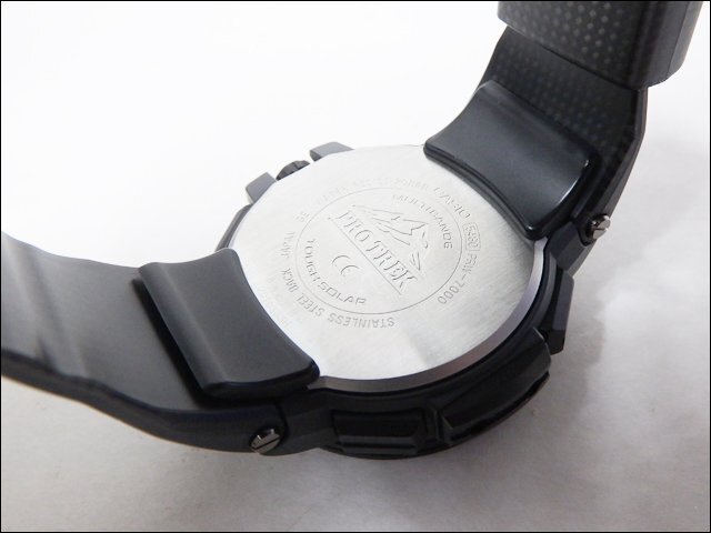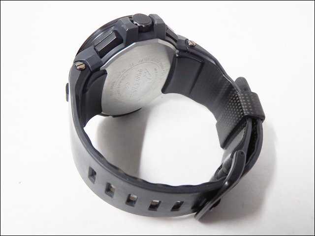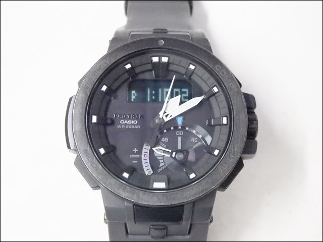 トリプルセンサーVer.3を搭載し堅牢性、機能性、操作性を追求した「PRO TREK」から、 様々なアウトドアでのアクティビティに対応する、デジタル/アナログコンビネーションモデル!! メーカー:カシオ 品名:PRO TREK PRW-7000 ケースサイズ:50mm(リューズ含まず) ムーブメント(駆動方式):ソーラー充電 ケース素材:樹脂/ステンレススチール ベルト素材:カーボンファイバーインサート 腕回り:13.0~22.0cm(12穴) 防水機能:20気圧(200m) 電波時計:〇 【中古品】 ベルトやベゼルに細かな擦れ等見受けられますが、目立ったダメージ等見受けられず動作確認済みとなっております。 付属品:本体のみ 別途:その他、いろいろ出品しています |