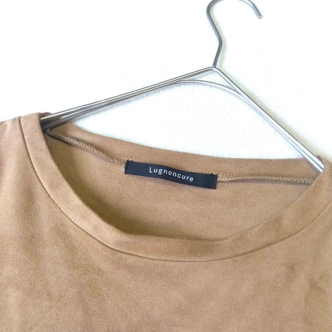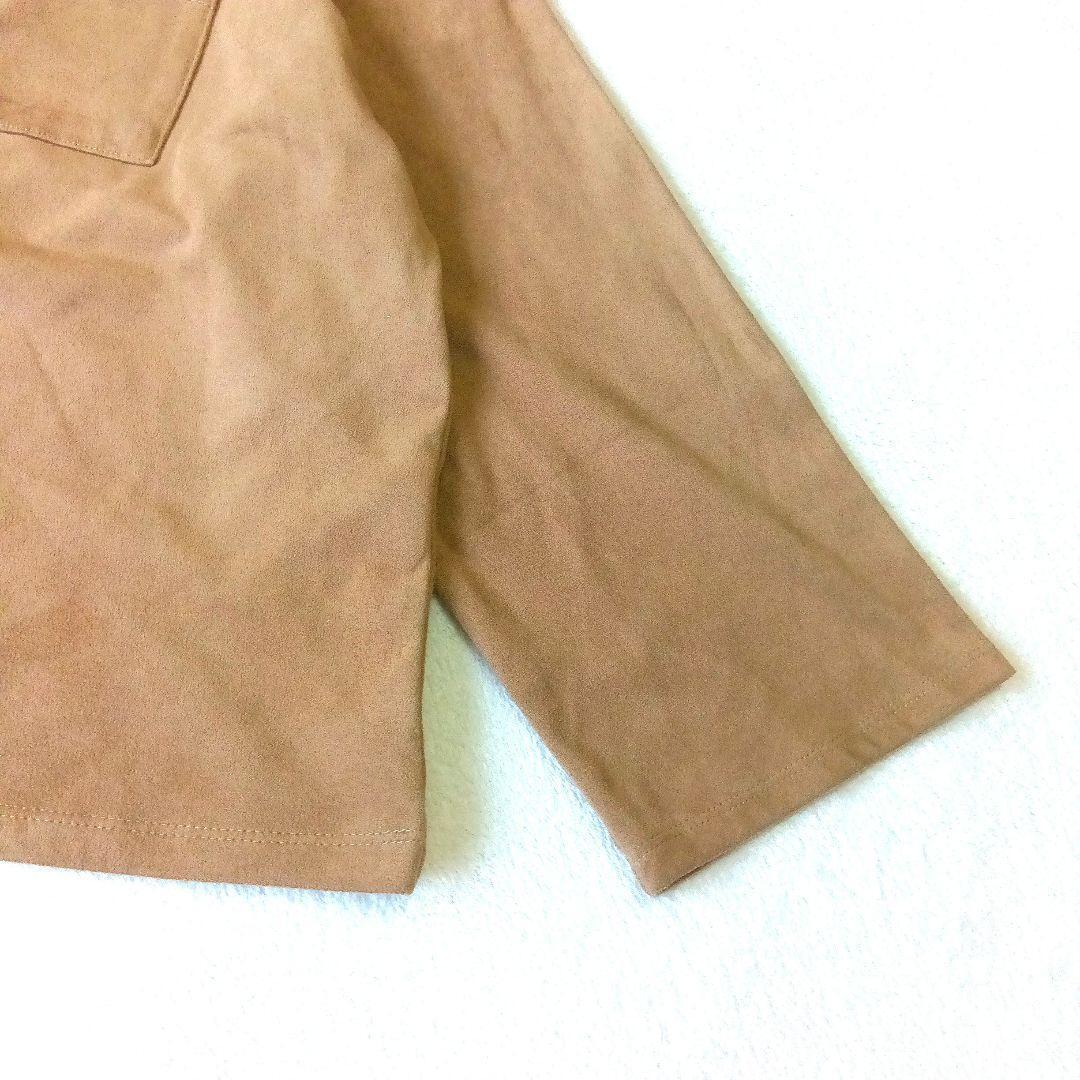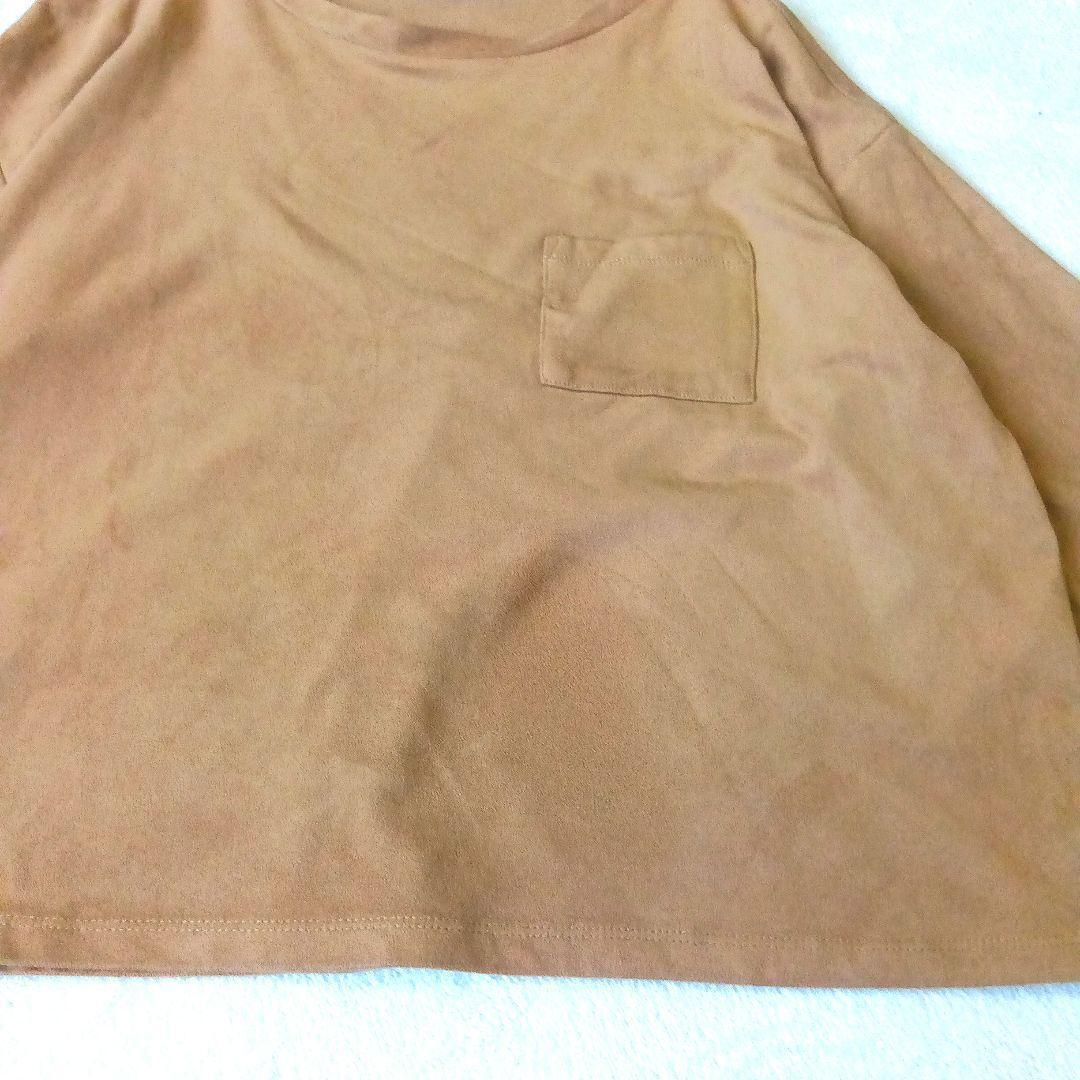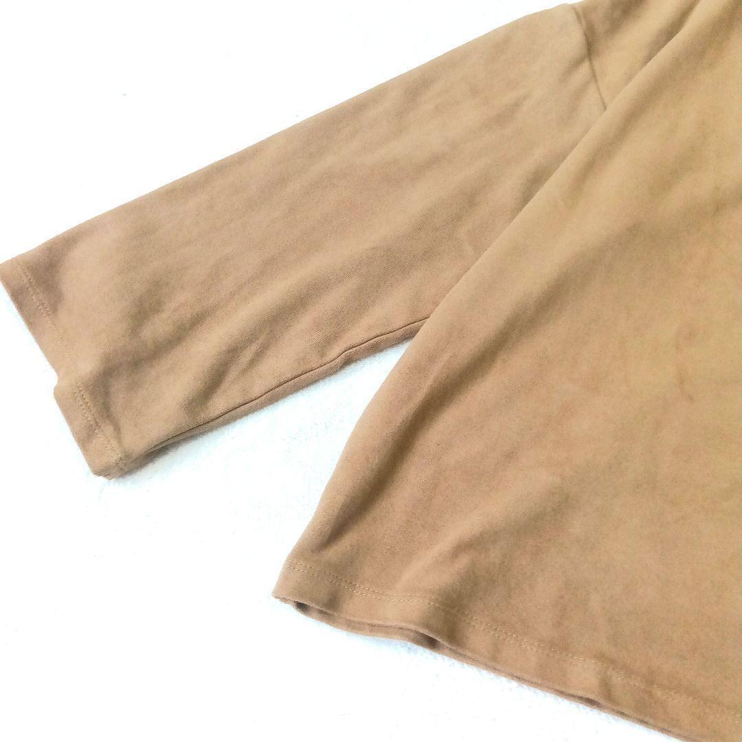 ルノンキュール スエード風トップスM 五分袖 ショート丈 キャメル 中国製 8A0AB2