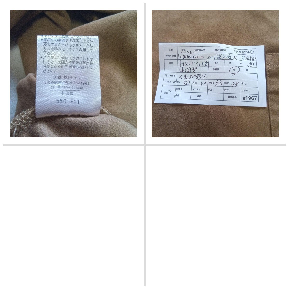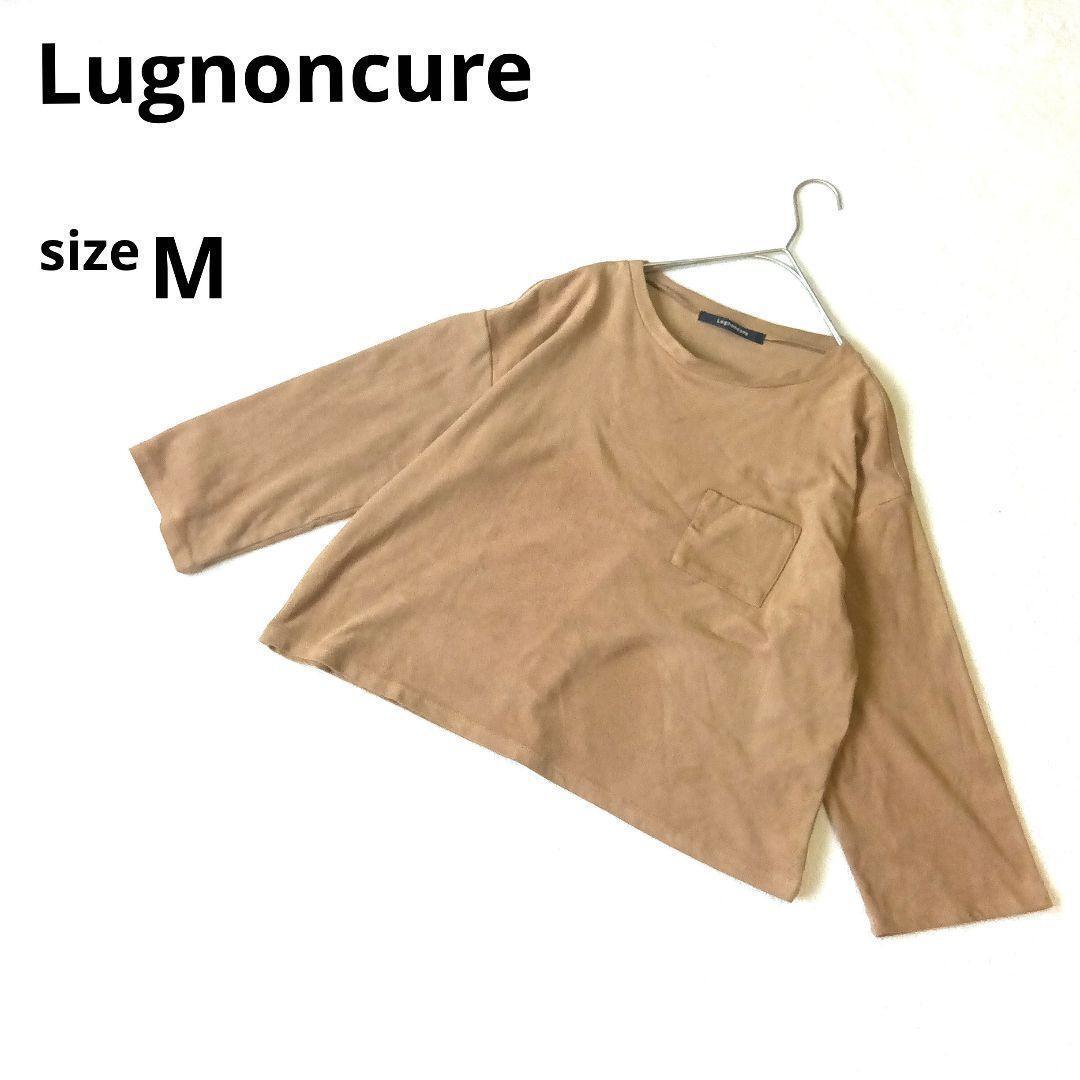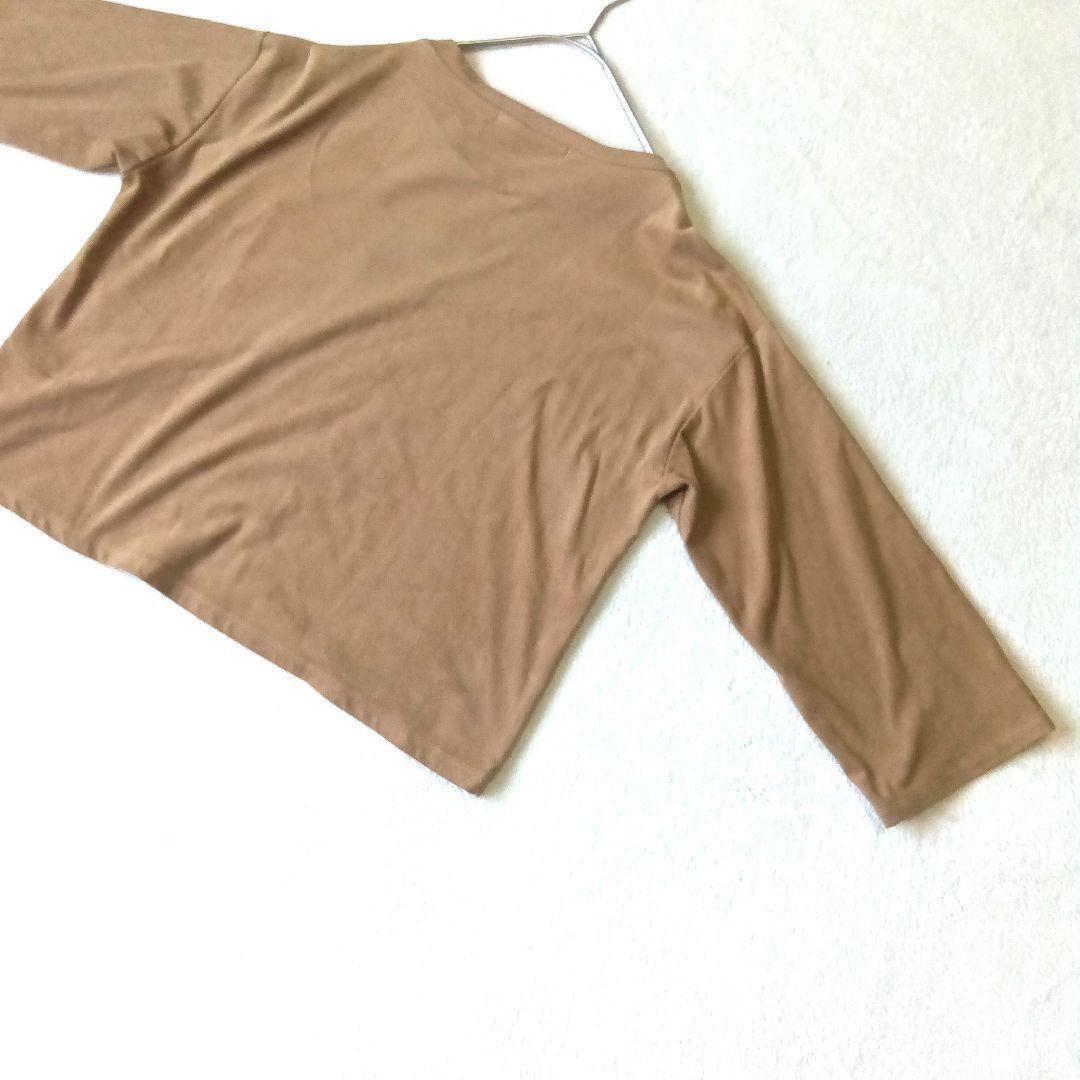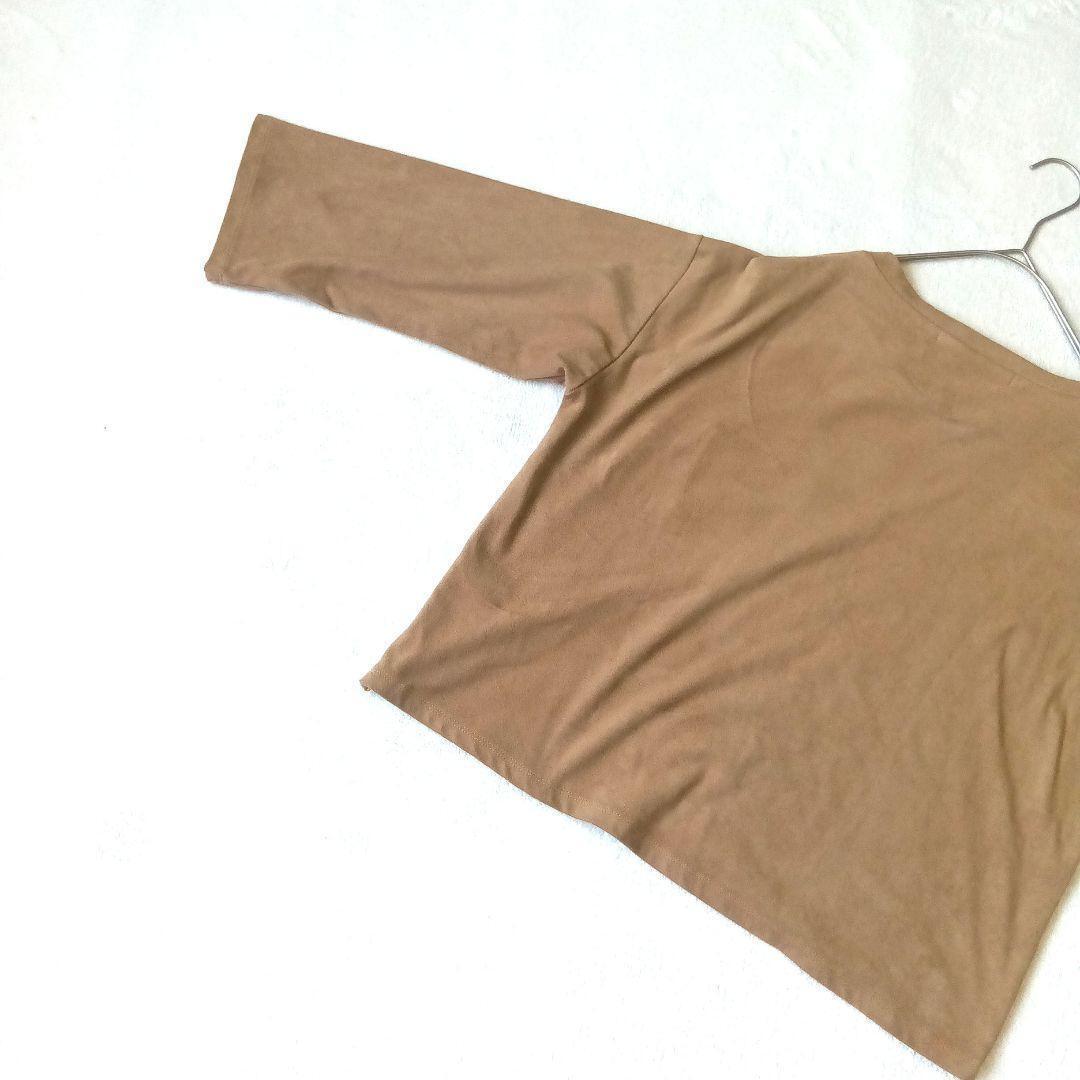 ルノンキュール スエード風トップスM 五分袖 ショート丈 キャメル 中国製 8A0AB2