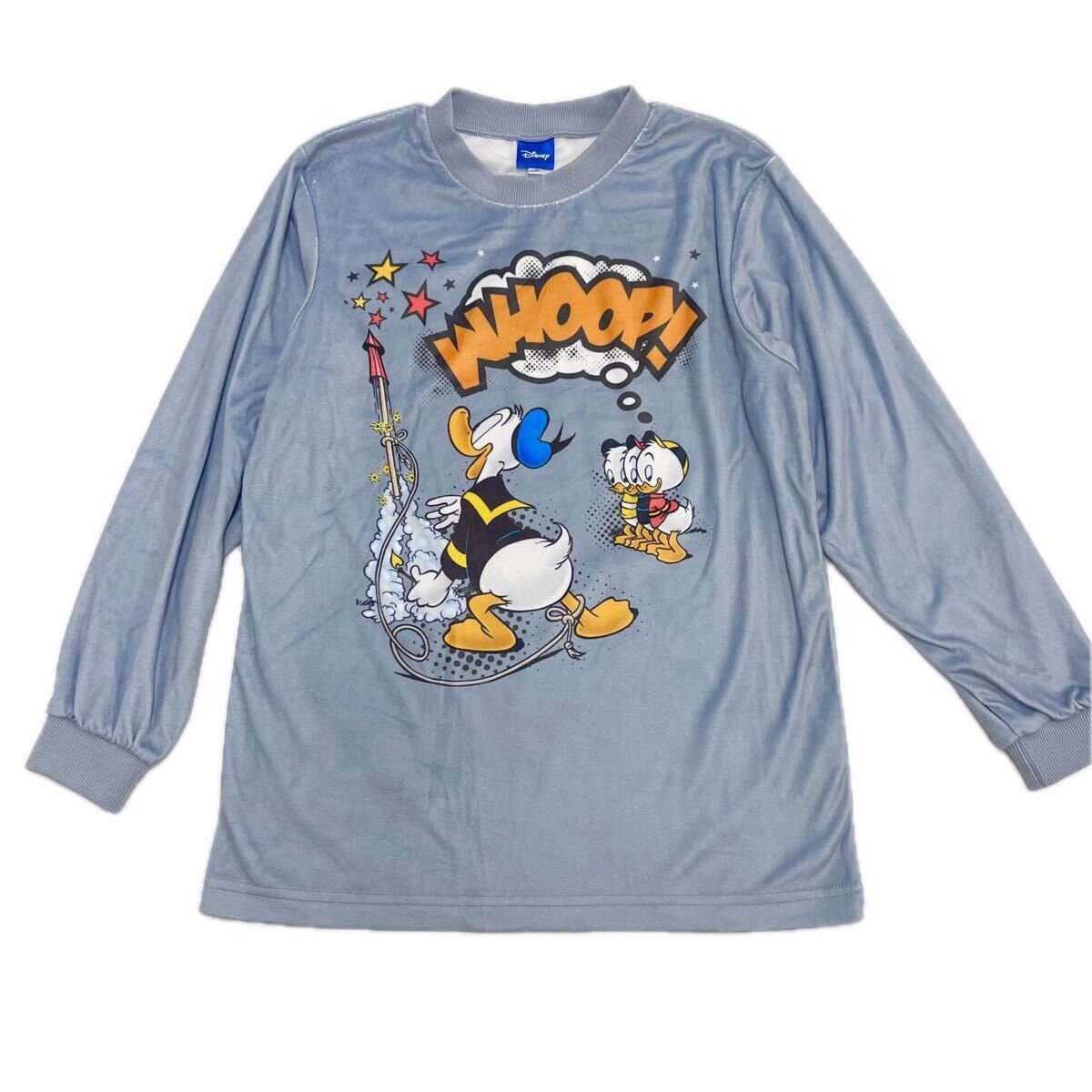 新品64695 160cm ブルーグレー ドナルドダック キッズジュニア ボーイズ ベロア風素材 丸首長袖パジャマ ルームウェア あったか素材 子供