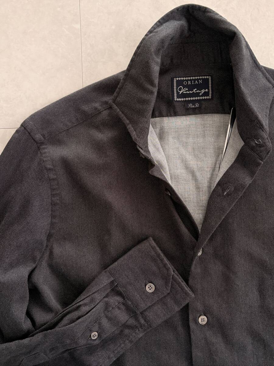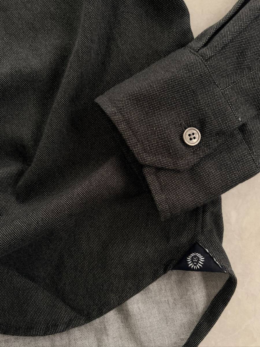 オリアンのVintageラインに属する本シャツは、クラシックなテーラリング技法と現代的な素材開発を融合させた、同ブランドの中でも通好みの一枚です。 生地にはナチュラルストレッチを備えたデニムオックス素材を採用しており、経糸・緯糸それぞれの番手差や撚り係数を細かく調整することで、ポリウレタンを用いずにわずかな伸縮性を実現しています。そのため、通常のデニム生地よりも肩周りや腕の可動性が高く、タイトフィッティングでもストレスのない着用感を得られます。 Vintageラインらしく、生地には旧式織機由来の微細なムラ感や、ドライタッチで粗野な表情が残されており、洗いを重ねるほどにアタリや縦落ちが現れ、経年変化を楽しめる点も魅力です。デニムオックス特有の密度のある打ち込みは、シャツとしての軽快さを保ちながらも適度なハリを与え、襟や前立てが立体的に見える構造となっています。 縫製はオリアンの定評ある細幅ステッチとカーブを多用した美しいパターンメイキングを踏襲しており、ワークシャツ的な素材でありながらドレス寄りの品格を保っています。オンオフ問わず、多様なスタイリングに馴染む実用性の高い一本です。 ブランド:ORIAN / オリアン 素材:コットン100% サイズ:39 着丈:75cm 袖丈:67cm 肩幅:46cm 身幅:51cm ※実寸値となりますが誤差はご了承ください。 ※迅速なお取引を心がけさせていただいております。オークション終了より24時間以内にご連絡をいただけない場合、土日祝日を除き48時間以内にお支払い手続きをいただけない場合は、お取引の意思なしと判断させていただき取引キャンセルとさせていただきます。 万が一上記が不可の場合は事前にご連絡いただくか、入札をお控えいただきますようお願い申し上げます。 ※なるべく現物に近いお色味で撮影するよう心掛けておりますが、閲覧環境の違い等によって違いが出る場合があります。 差し替えトラブルを避ける意味でも上述した旨含め、イメージと違う等での返品は受け付けておりません。 百貨店並みのサービスを求める方や神経質な方の入札はお控えいただきますようお願い申し上げます。 また、差替えやSNS使用後の返品等を防止するためためにも、原則返品には応じられません。 疑問点や心配事等がある場合は入札前に質問欄にてお問い合わせください。 ※当方が出品するすべての商品は間違いなく本物ブランド品となりますので、安心してオークションにご参加ください。 万が一、第三者等により偽物と判断された場合、商品の返品、お支払いただきました全額を返金をいたします。 |