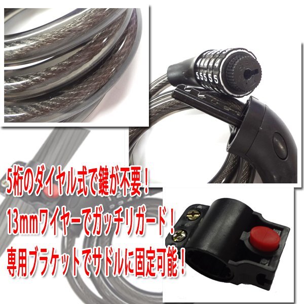 自転車 ワイヤーロック ダイヤル式 ブラケット付き 盗難防止