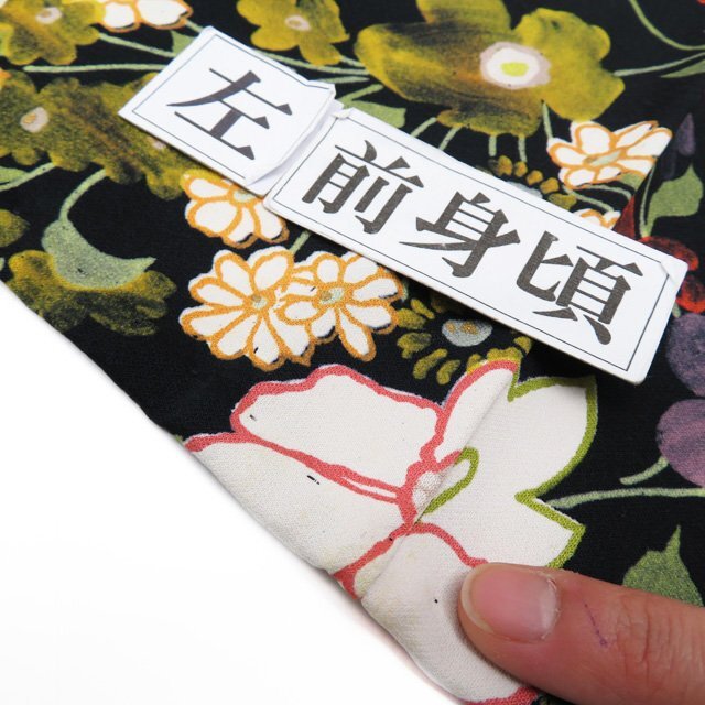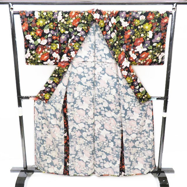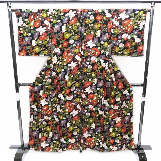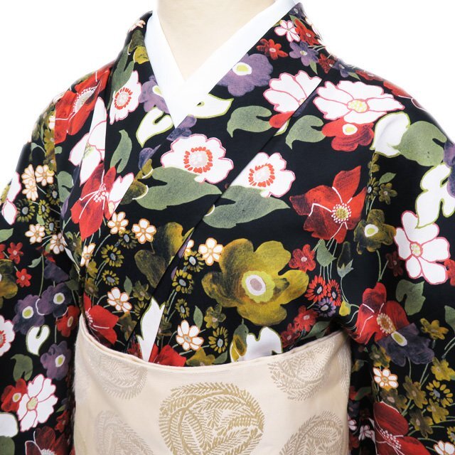 丈159cm(+0) 裄65.5cm(+1) 袖丈46cm(+6.5) 前幅24.5cm 後幅30cm ※サイズのお直し、承ります。 (身丈のみ、身幅のみのお直しは承っておりません) ※身丈は肩から測っております。 ※()内はおおよそのお直しいただける長さです。胴裏の長さ等によって()内の長さ通りお直しできない場合があります。 単位:cm 素材 正絹 商品ランク C ●着用時期 6月、9月(+-2週間) ●着用シーン 観劇、ご友人との食事、お買い物など ●お色 黒色 多色 居敷当のついていないお品物です。 所々白場にアクがございますが、まだまだご着用いただけるお品物です。 写真に写っている着物のみの販売で、帯等の付属品はついておりません。 一部商品は実店舗・他サイトでも並行して販売しておりますので売り切れの際はご了承ください。 その他多数販売中 oo | ||||||