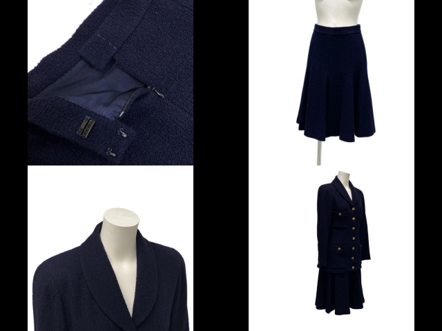 シャネル CHANEL スカートスーツ サイズ40 M 20923 ウール ダークネイビー レディース パイル/ココボタン 26 美品 レディーススーツ