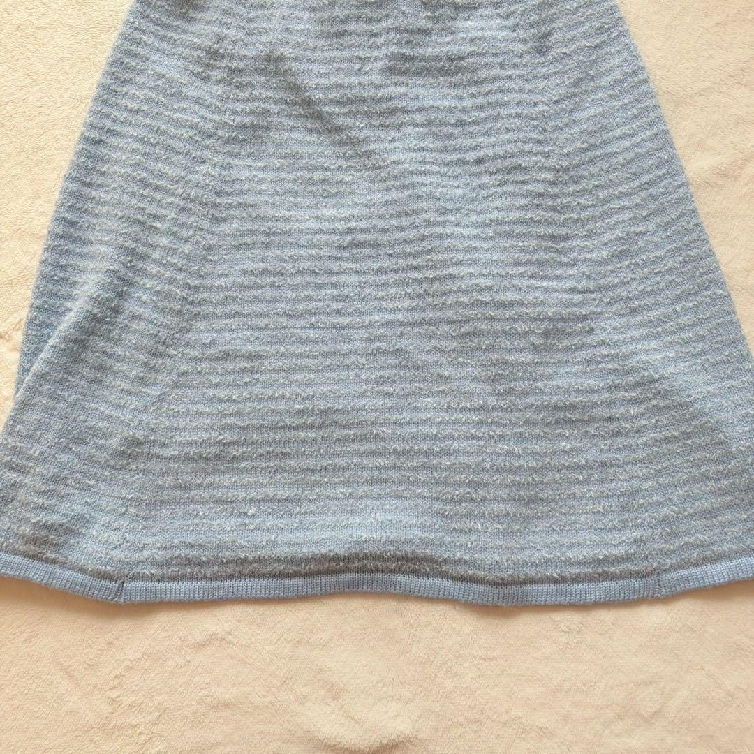 柔らかな水色のニットフレアスカート。