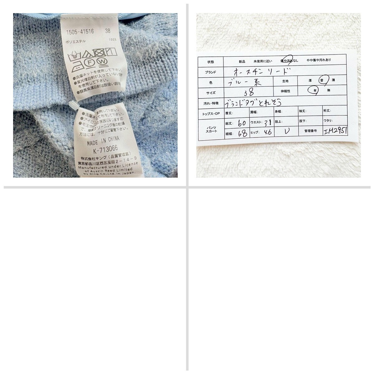 サイズや汚れ箇所など、詳細は採寸表でご確認ください