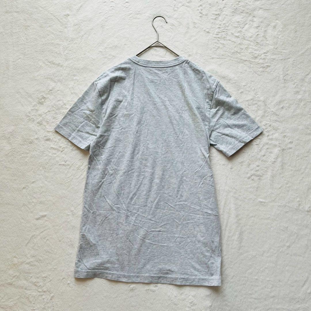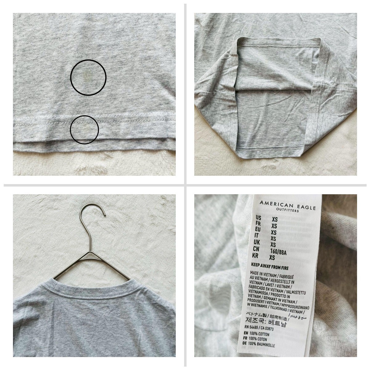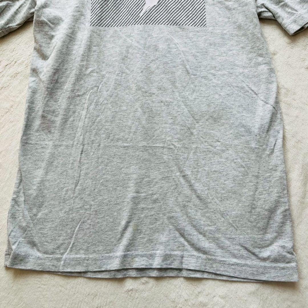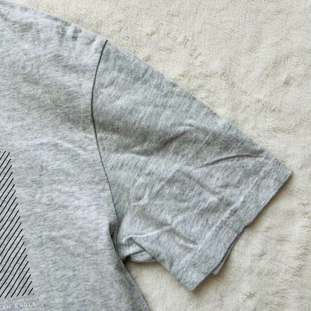グレーのコットンTシャツ、AMERICAN EAGLEのロゴプリント入り。