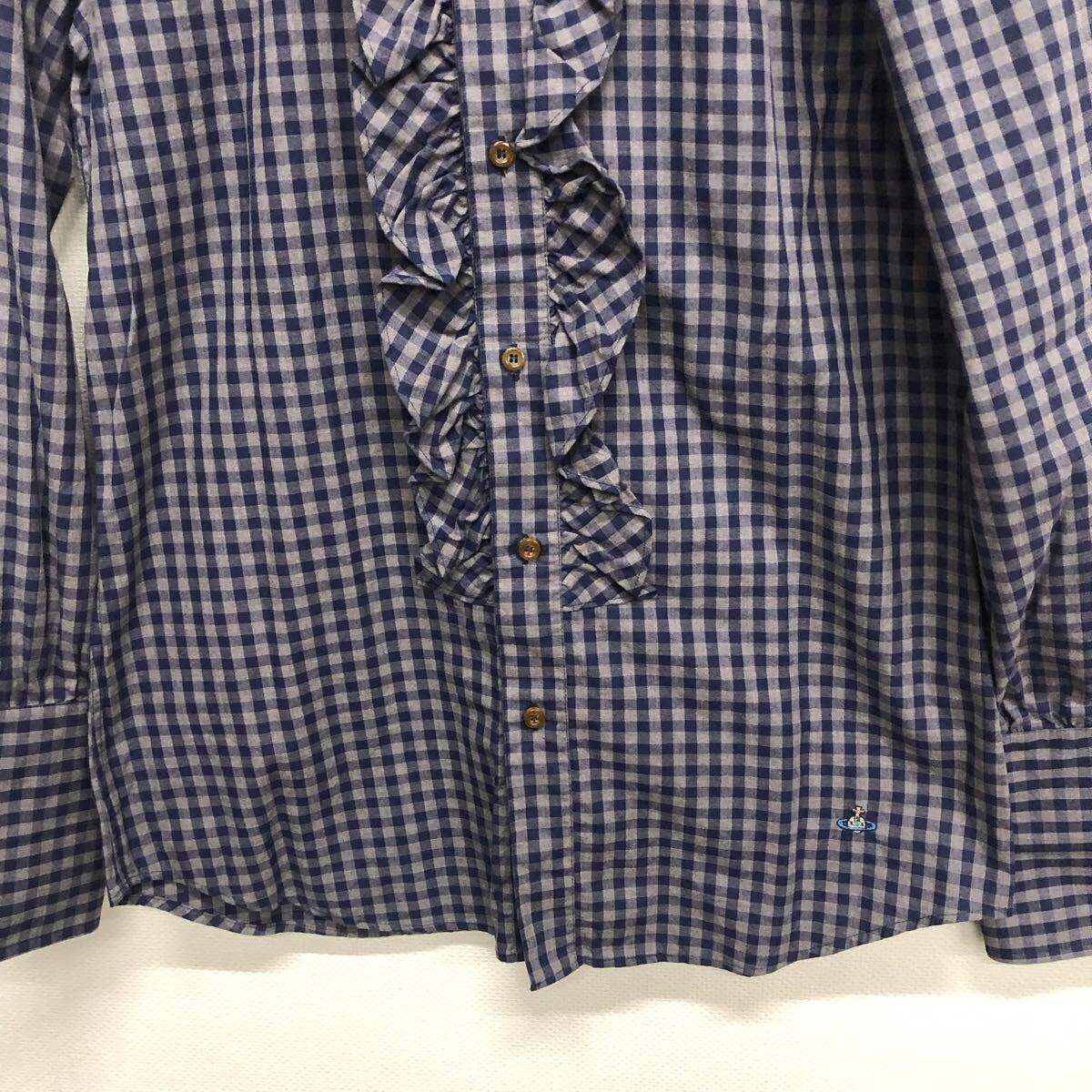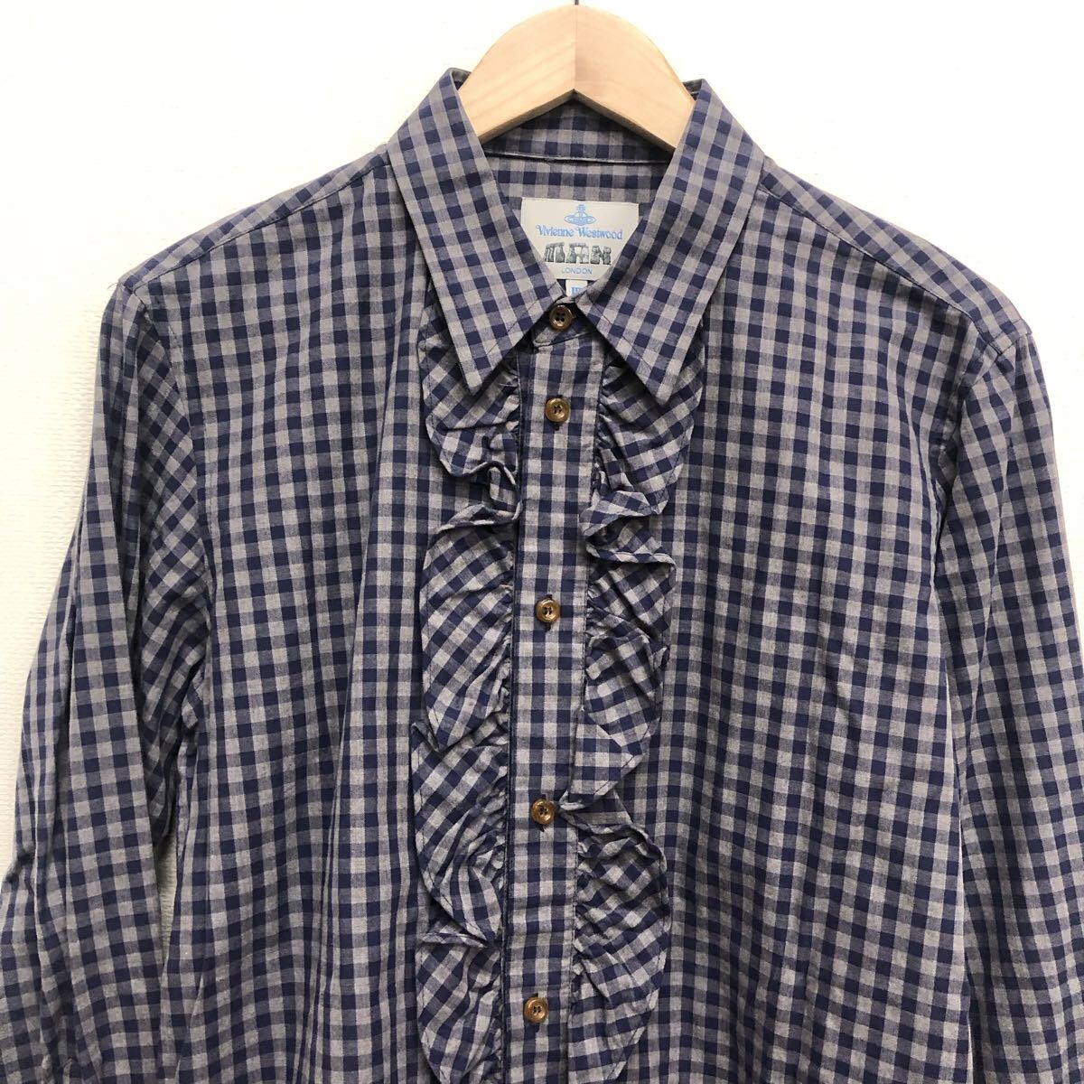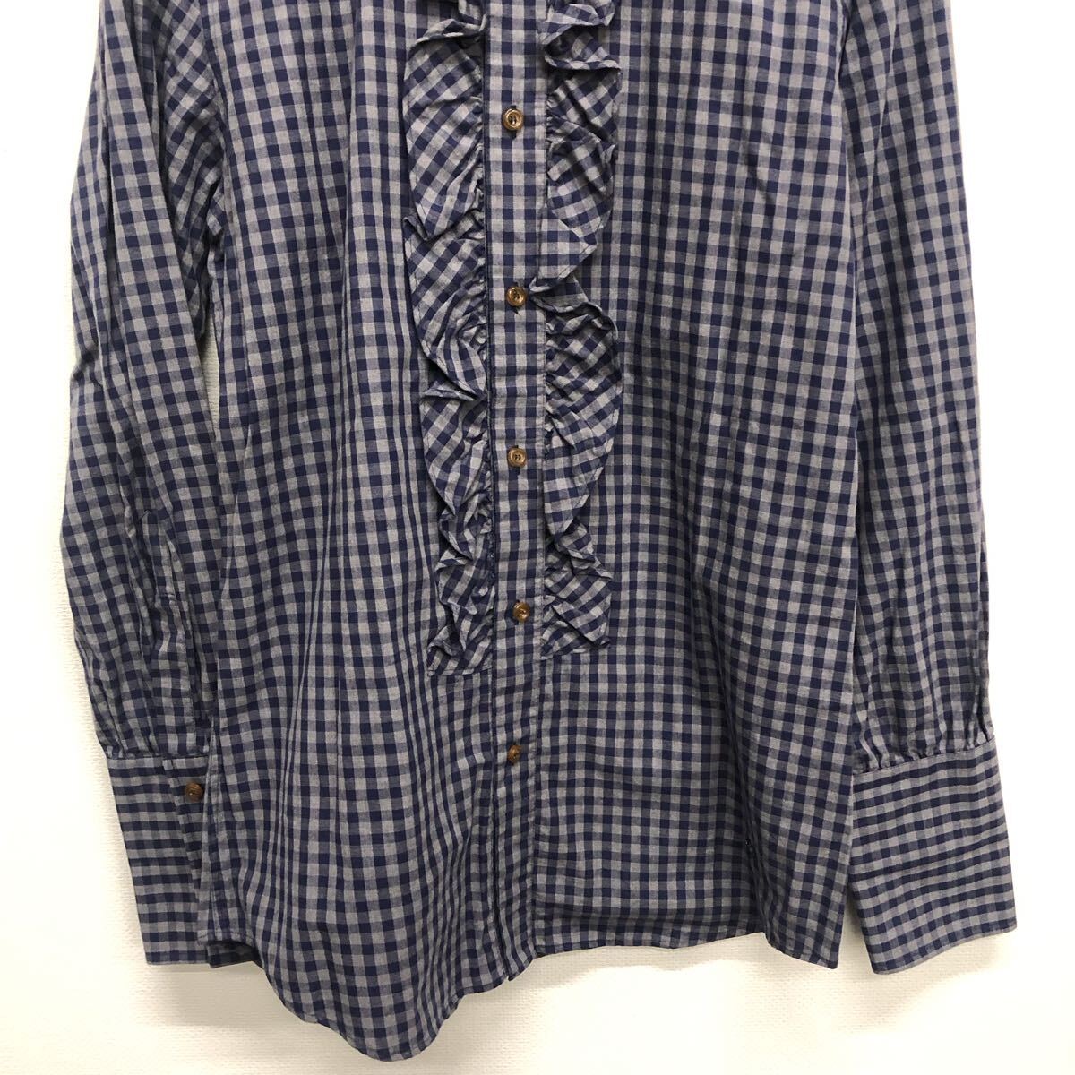 【Vivienne Westwood MAN】ヴィヴィアンウエストウッド マン★長袖シャツ サイズ3 ネイビー チェックフリル 4643-2002 MDE