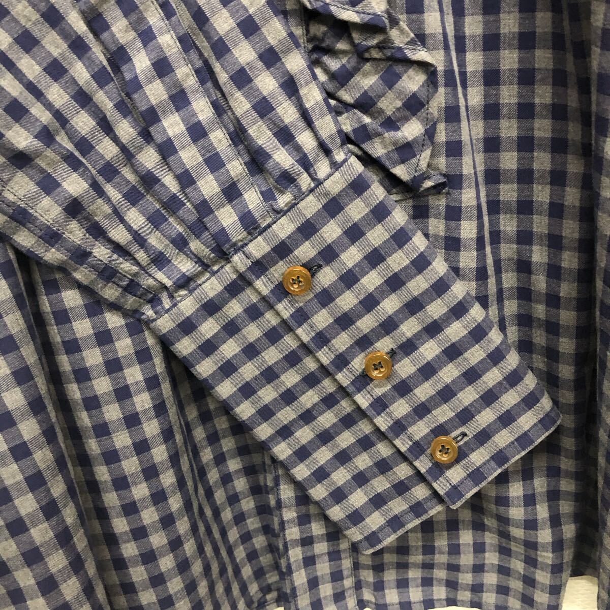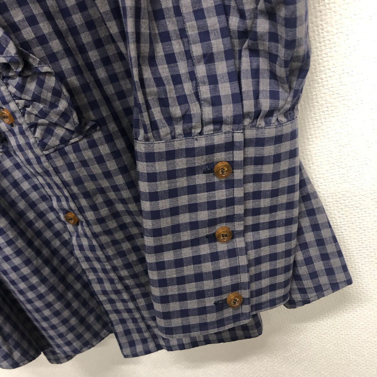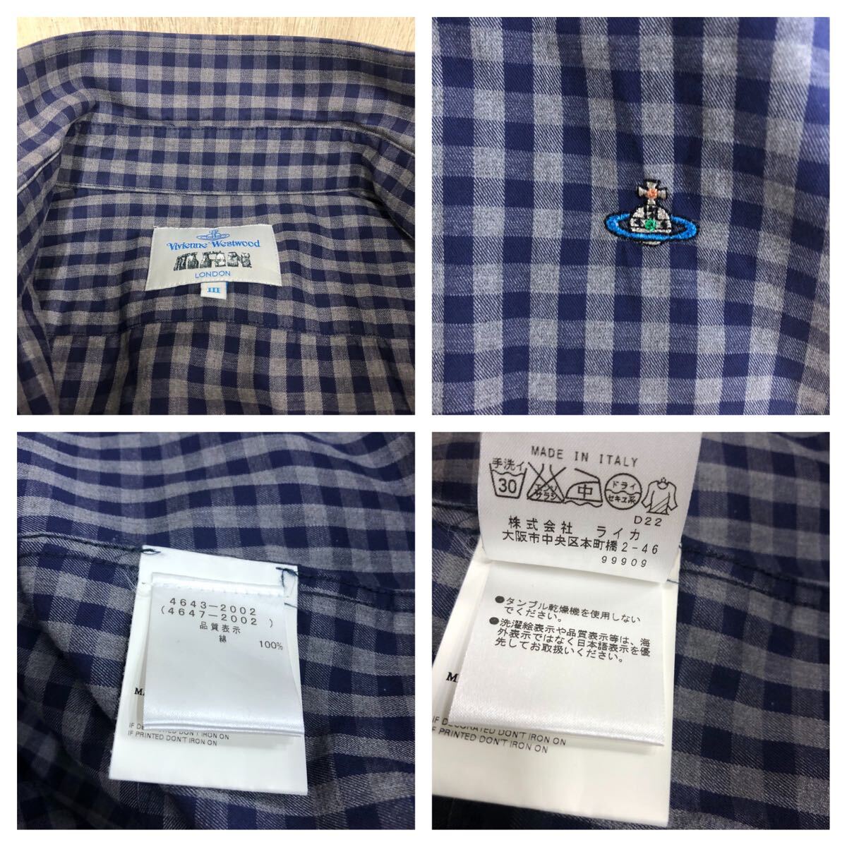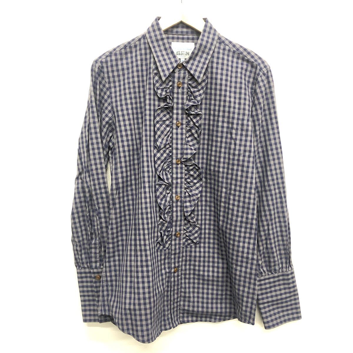【Vivienne Westwood MAN】ヴィヴィアンウエストウッド マン★長袖シャツ サイズ3 ネイビー チェックフリル 4643-2002 MDE