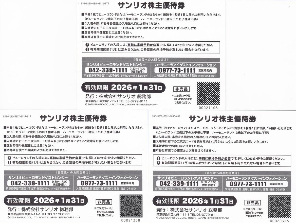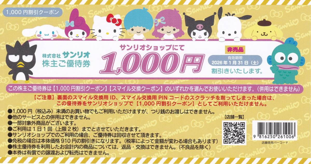 サンリオ株主優待券3枚セット プラス 1000円割引券