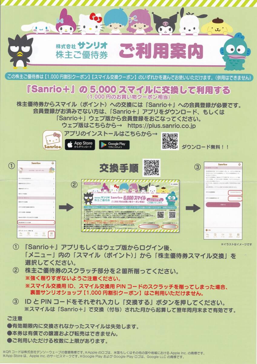サンリオ株主優待券3枚セット プラス お買物割引券(1000円) (A)