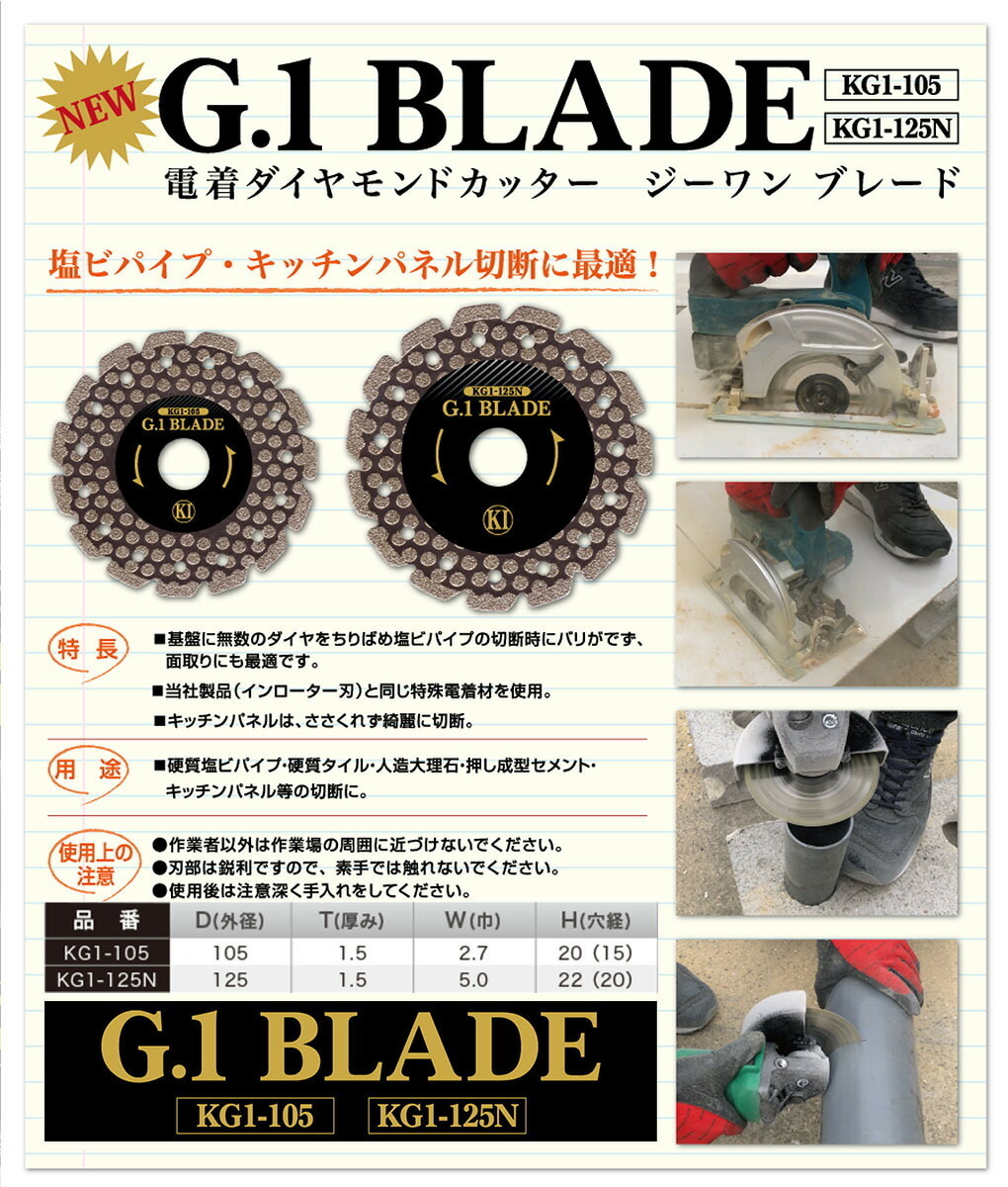 株式会社K.I ドリル 電着ダイヤモンドカッター 塩ビパイプ・キッチンパネル切断に最適! ジーワンブレード KGI-105