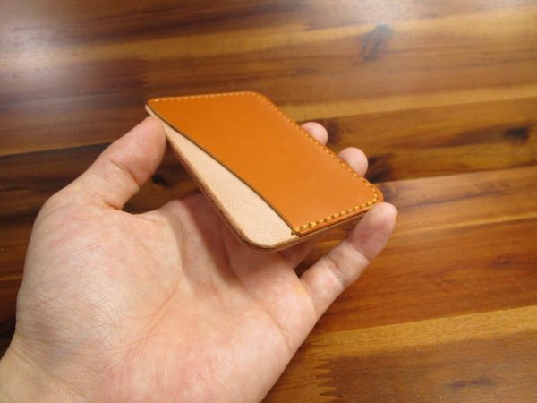 素仕上げのタンニンレザーでメインパーツの厚みが2mm、しっかりした仕上がりです。