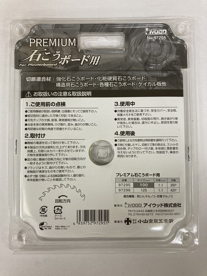 型番: 97295 プレミアム 石こうボード用 チップソー 100x1.1x36P  内径20mm