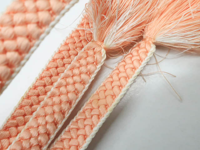 リサイクル商品のため、帯揚げにしわと帯締め房近くにしみがございますが、ご使用頂けると存じます。 |