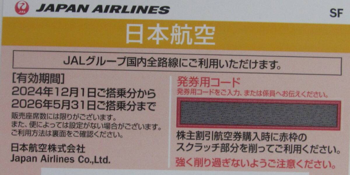 即決 JAL株主優待割引券 1枚 2026年5月31日まで