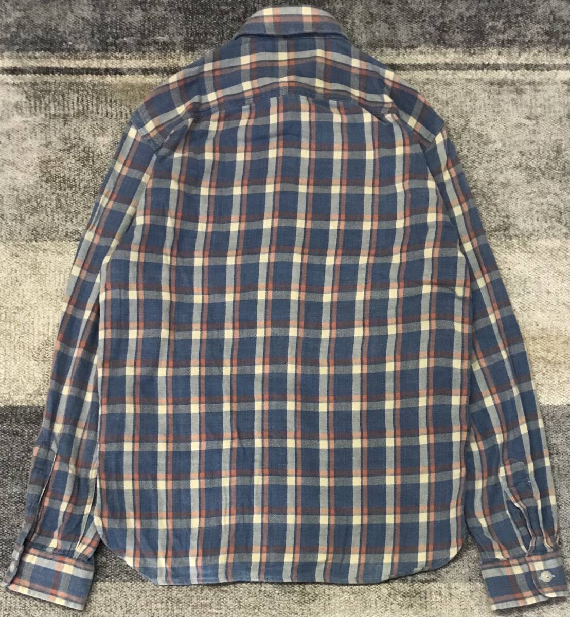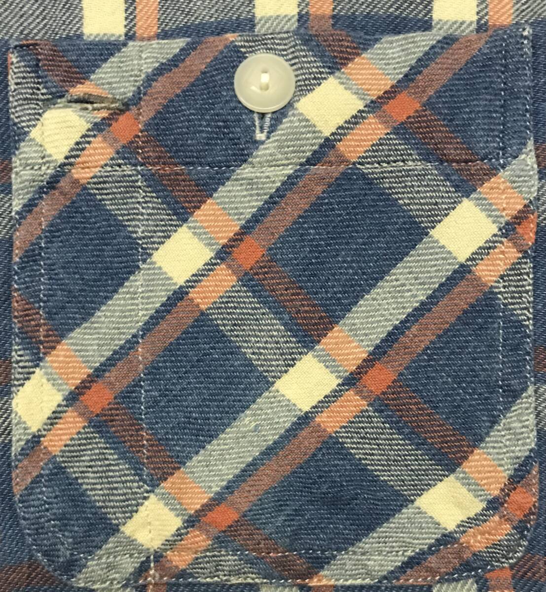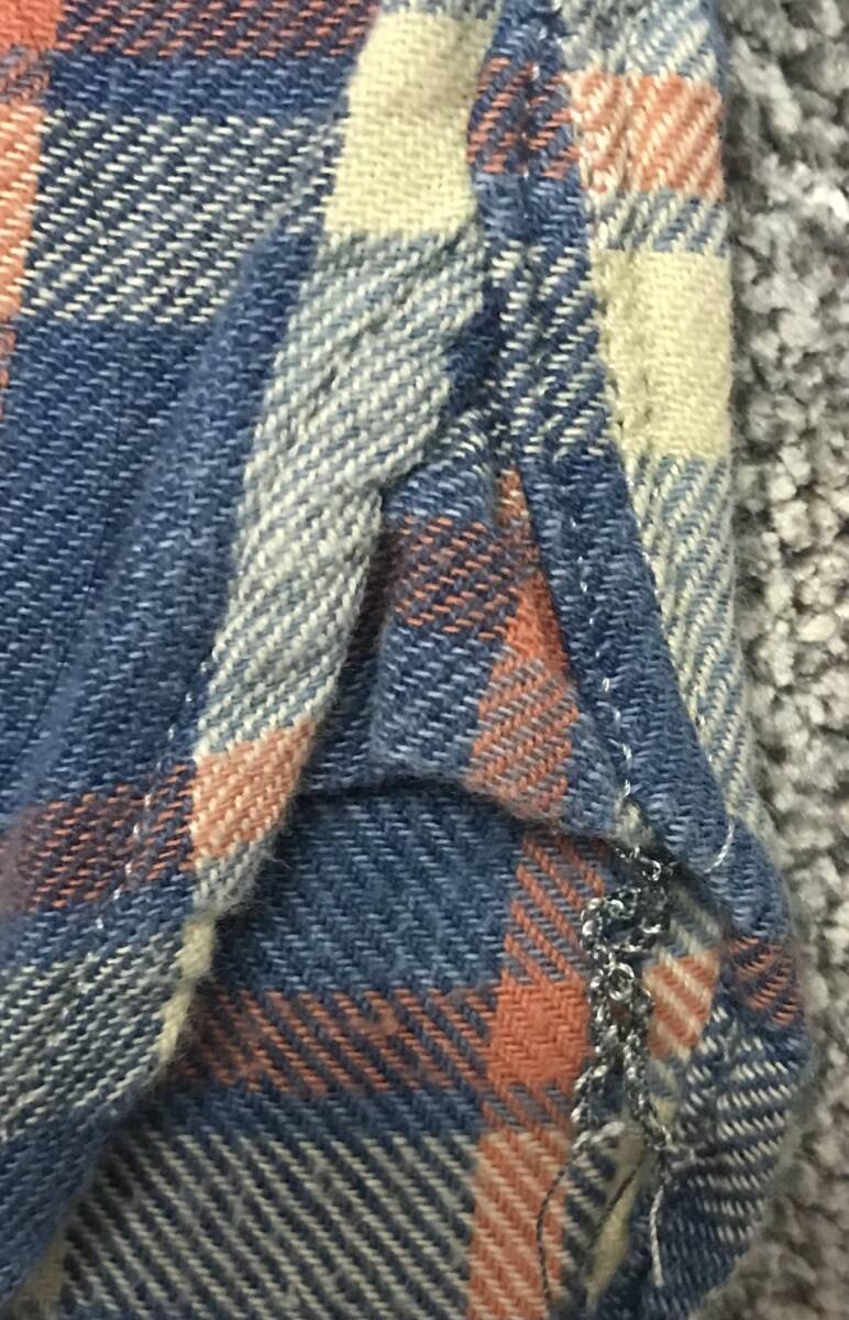 多少使用感やシワ、ネルシャツ特有の若干の起毛感、その他、製品の特性上、所々下地糸が見える箇所等は見受けられますが、古着慣れされている方でしたらまだまだご使用頂けます。