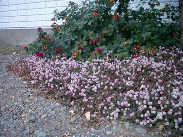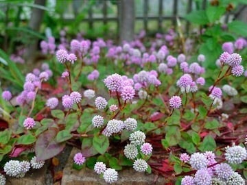 ◆名前はヒメツルソバ(姫蔓蕎麦)と言います。ピンクや白色のお花が金平糖のように丸く愛らしく、ヒメツルソバ(姫蔓蕎麦)は匍匐性で地面を覆うように生長するのでグランドカバーにも最適な植物です。